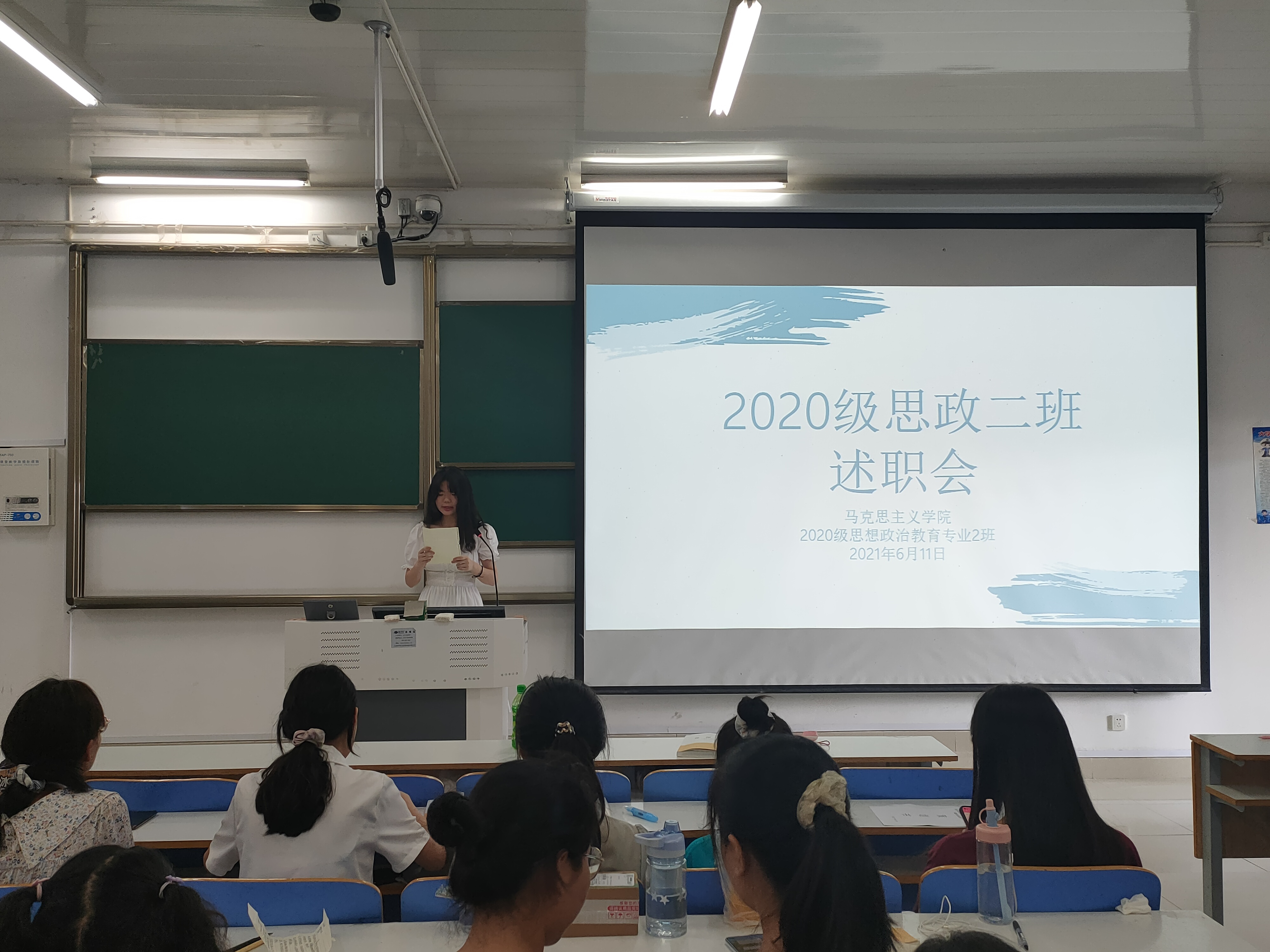为增进我班同学对班委工作情况的了解,6月11日下午,pp电子官方网站2020级思想政治教育二班、定向二班班委述职大会在社科楼514教室顺利召开。二班、定向二班全体同学共同参与大会。大会由班长李晨曦主持。