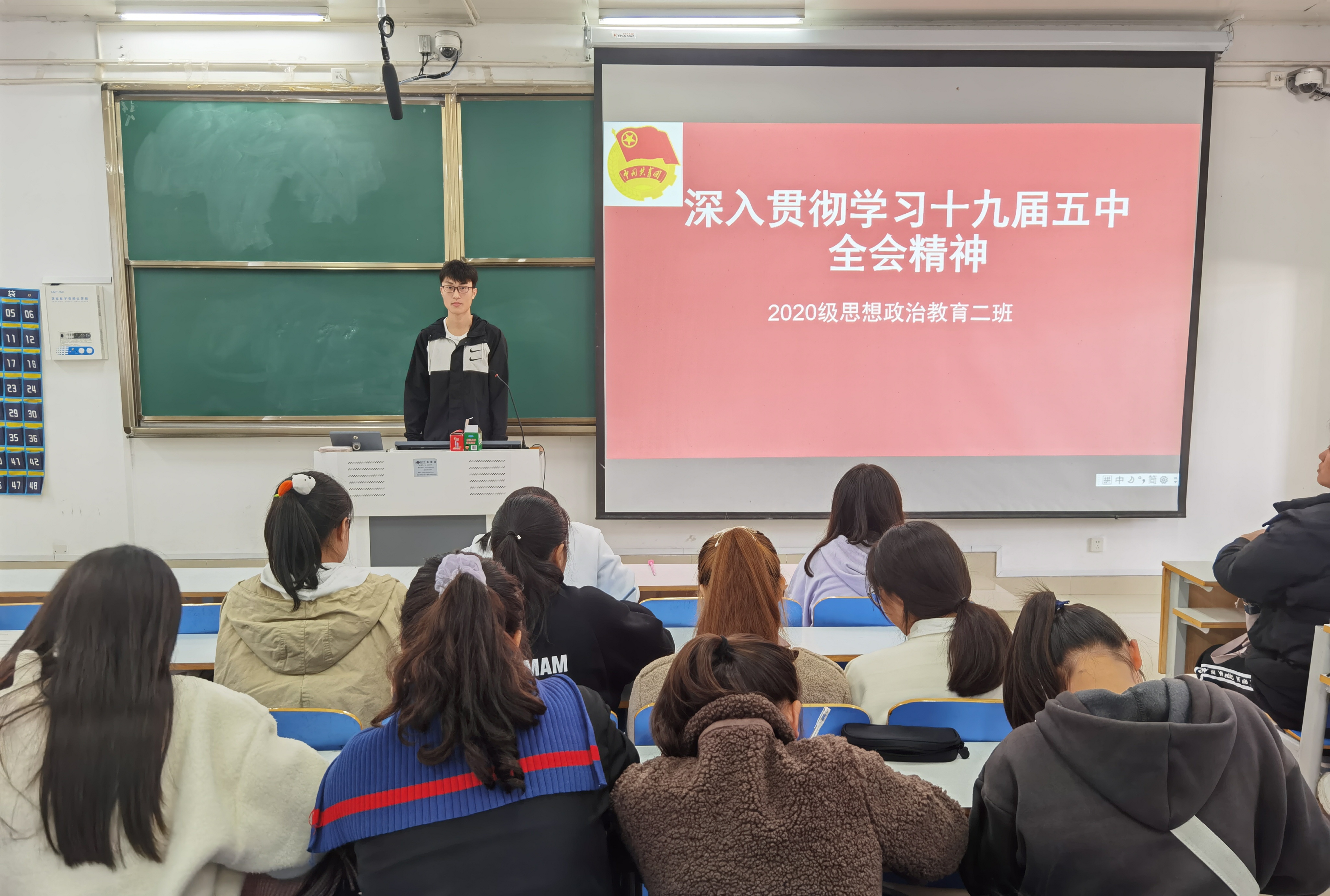 11月19日上午,pp电子官网2020级思想政治教育二班在社科楼514教室开展学习贯彻十九届五中全会精神团日活动,2020级思想政治教育二班全体学生共同参与本次活动。活动由团支书陈宇航主持。