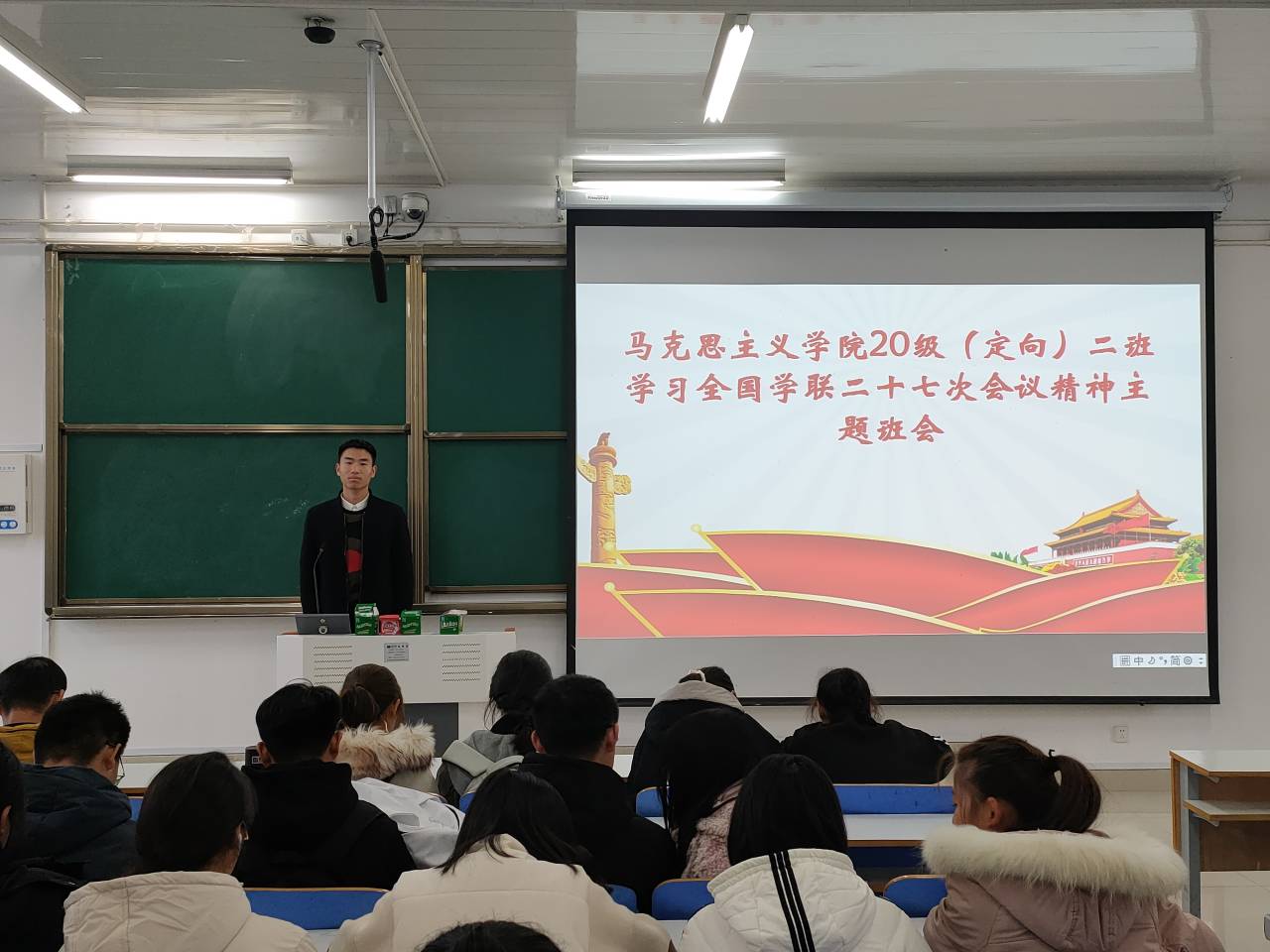 11月24日,pp电子官方网站2020级思想政治教育定向二班学习全国学联二十七次会议精神主题班会在社科楼514教室顺利开展。定向二班全体同学参与此次班会。班会由高红凯主持。