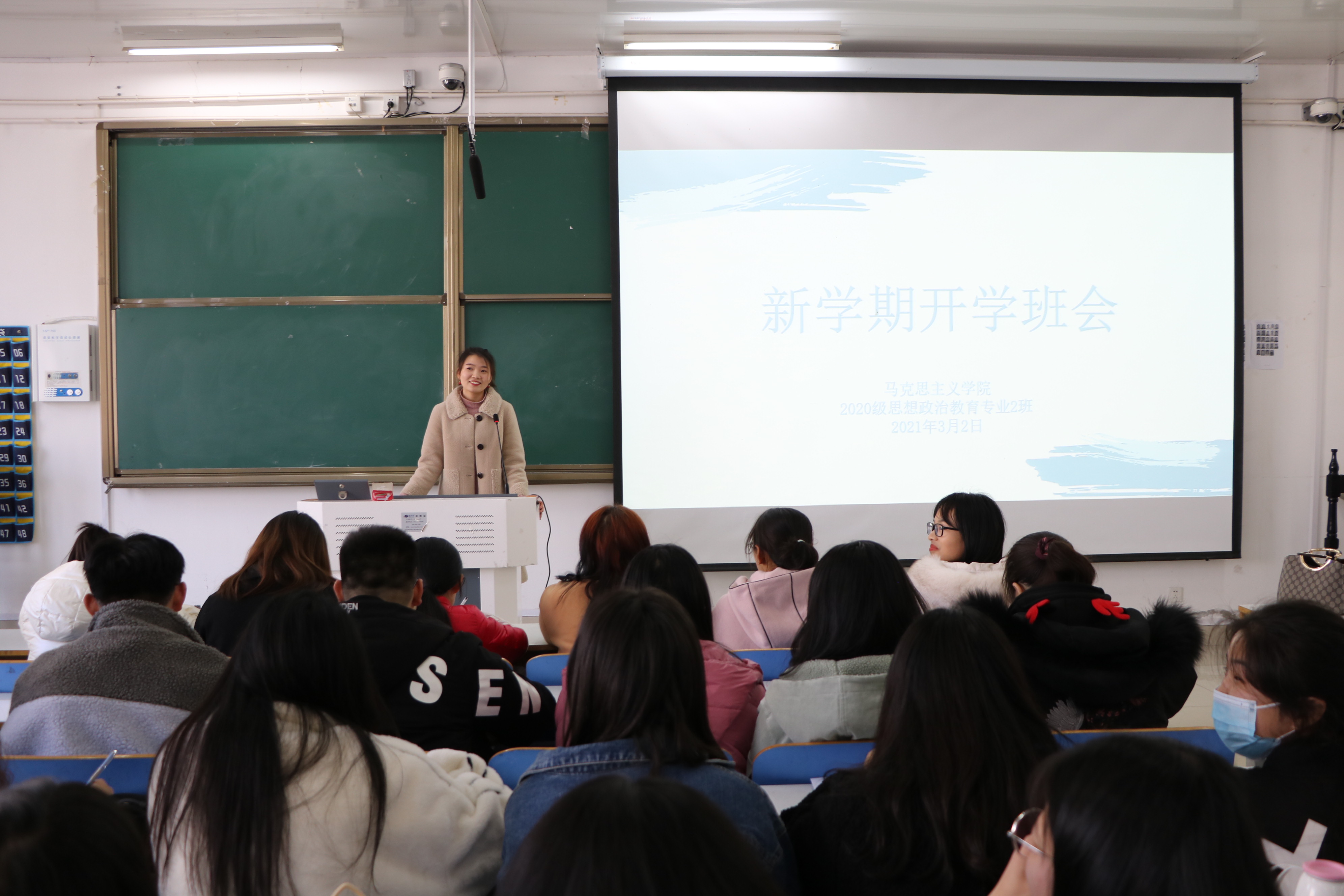 3月2日,pp电子官方网站2020级思想政治教育二班、定向二班新学期开学班会在社科楼516教室顺利召开。班主任陶青青、二班全体学生及本学期转入我班的8名新同学共同参与本次班会。会议由陶青青主持。