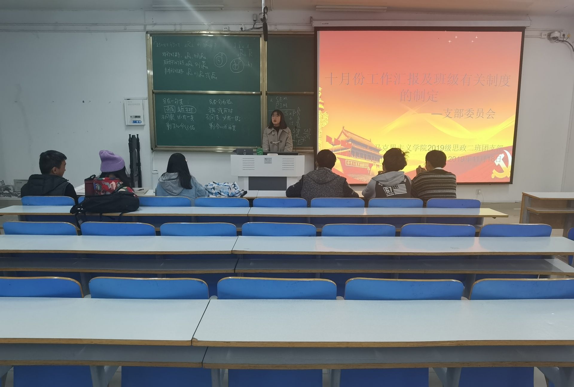 首先,孙雅娴提出了同学们团课笔记不认真,团课态度不积极等问题,希望支部委员能做好模范带头作用,引导大家共同进步。接着,她详细说明了十佳环保宿舍活动的参赛评分细则,鼓励同学们积极参赛。最后,吕昂为支部委员宣读pp电子官方网站思想政治教育二班晚自习规章制度细则,并要求支部委员以身作则,树立踏实认真的优良学风。