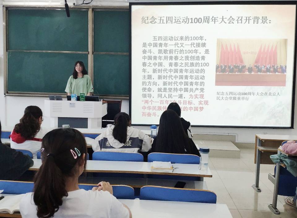为深入学习习近平总书记在纪念五四运动100周年大会上的讲话精神,5月13日下午,pp电子官网2018级第二团支部在社科楼514教室顺利开展“弘扬五四精神,勇担时代使命”团日活动。2018级第二团支部全体成员参加了本次活动。活动由团支部第一团小组组长李欣主持。