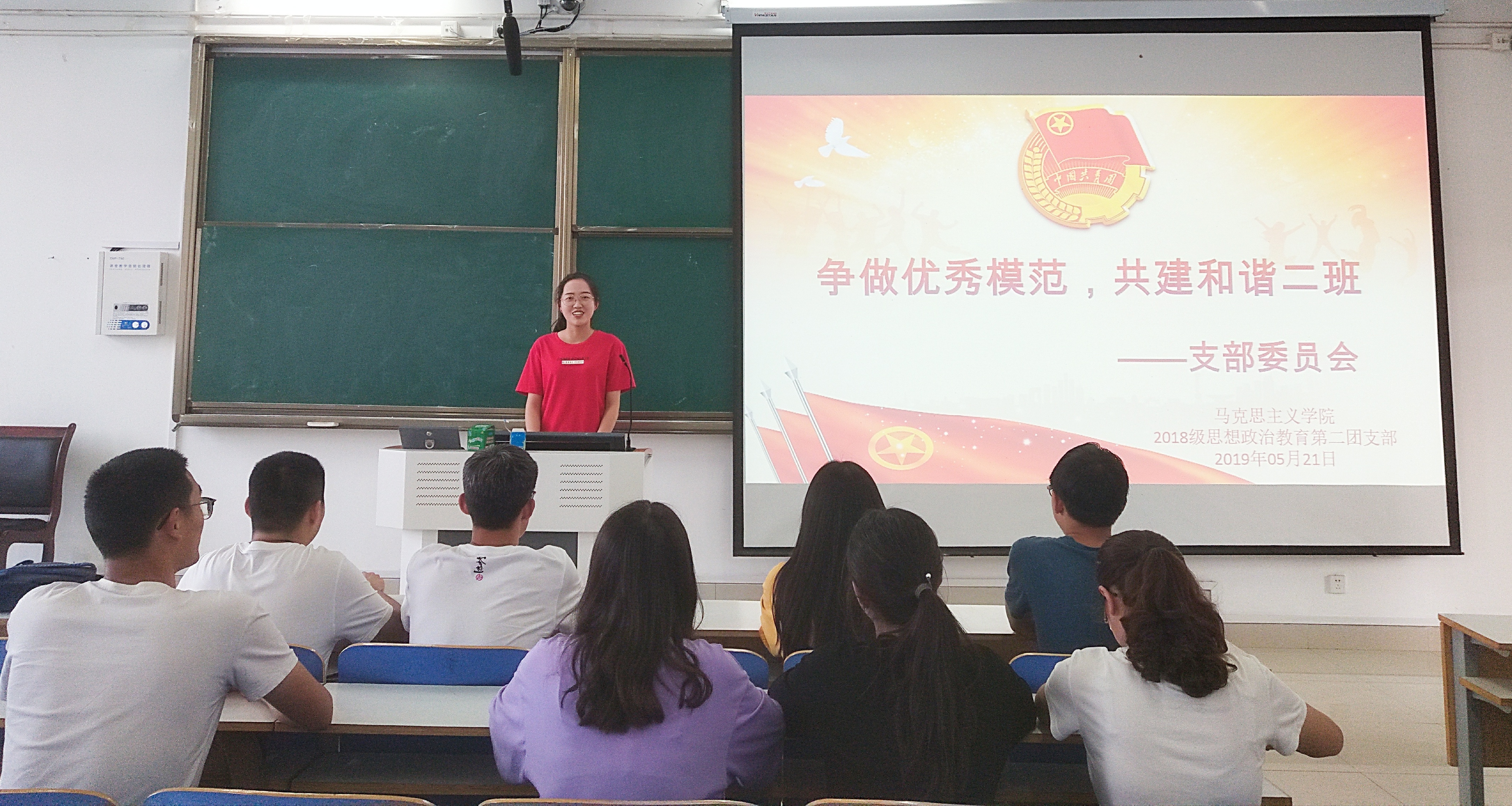 5月21日下午,pp电子官方网站2018级第二团支部在社科楼514教室顺利开展了主题为“争做优秀模范,共建和谐二班”支部委员会。本次会议由团支部书记黄子晋主持。