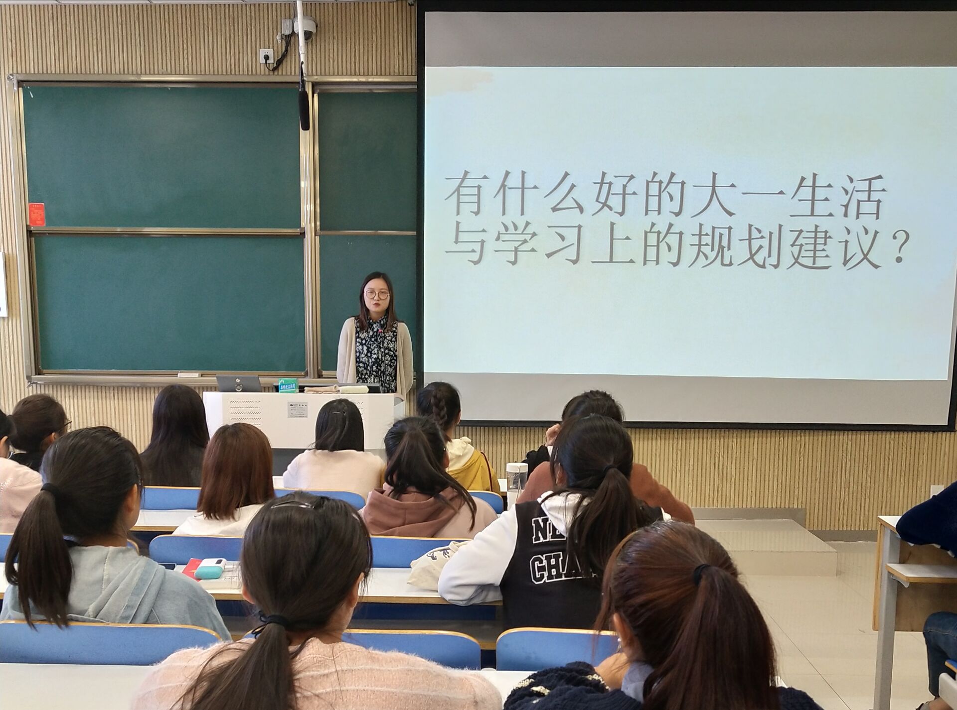 会上,王伊娜根据自己的经验,向同学们提出有关学习和生活等方面的建议。她指出,在学习上,课前要预习功课,课上认真听讲,课余以阅读充实自己,并强调英语学习的重要性;在生活上,要勇于接触新事物,将自己兴趣爱好深入发展下去。在人际交往上,她提出,要以包容为重心,尊重他人的选择,理解他人的感受。接着,王伊娜对同学们在社团、学生会事情处理中产生的问题,认真仔细分析并给予建议。她建议,同学们要学会合理调节自己的心态,协调好各方面工作。最后,黄子晋对班会作出总结,并对王伊娜的热心解答表示由衷的感谢。