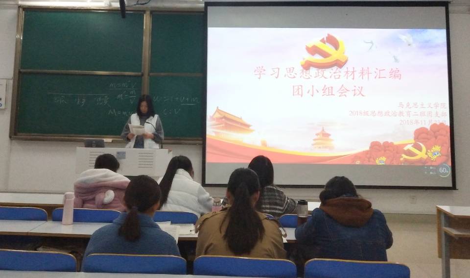 11月23日下午,pp电子官方网站2018级思想政治教育二班第一团小组在社科楼514教室顺利开展了“学习思想政治材料汇编”主题团会,本次团会由吴智媛主持。