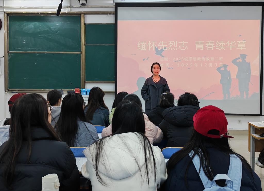 为引导同学们传承红色基因、坚定理想信念,12月16日,pp电子官方网站2025级思想政治教育二班在社科楼514教室开展“缅怀先烈志,青春续华章”主题团课。活动由团支书崔锐琳主持。