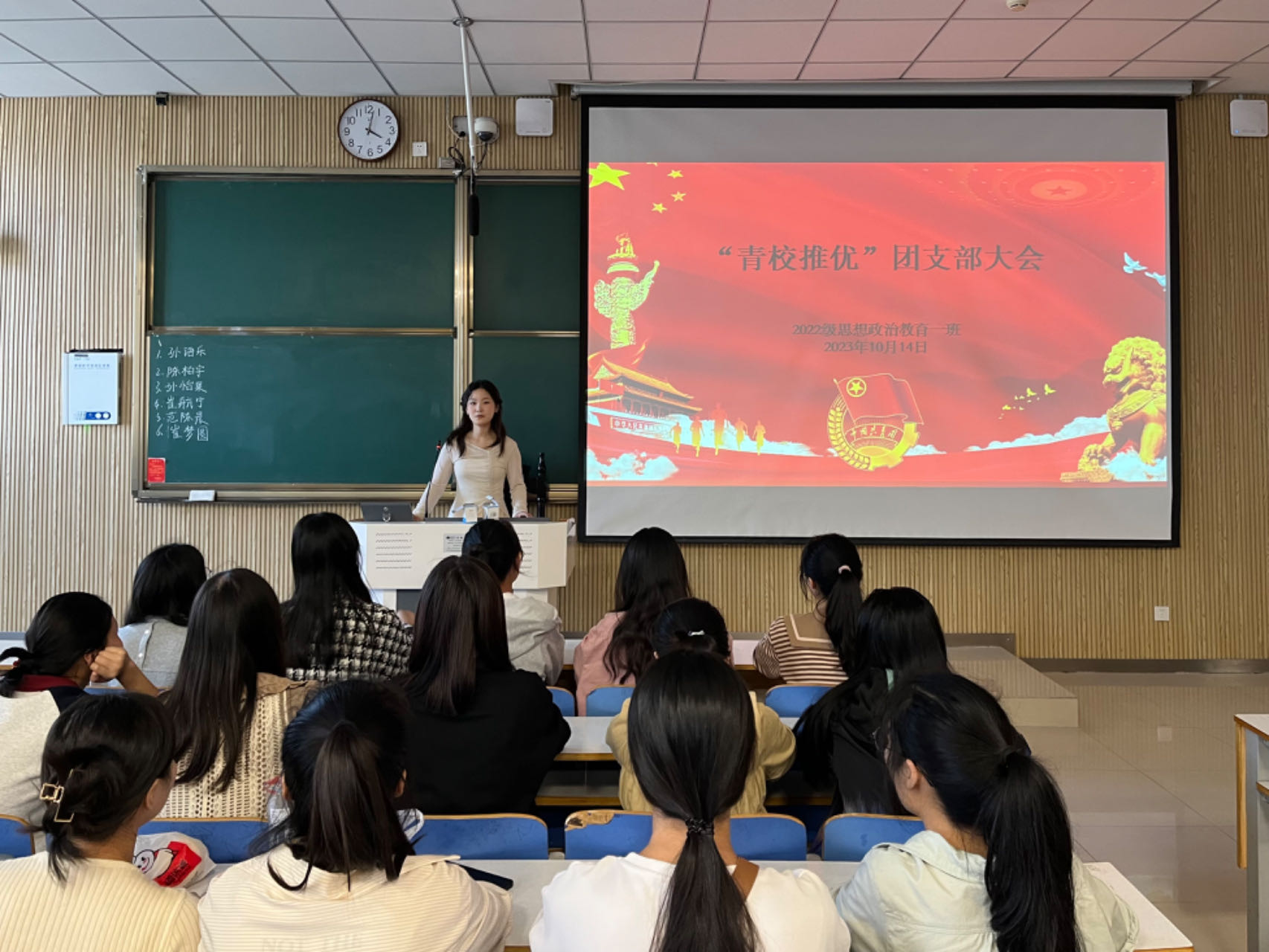 为充实党的新生力量,激发团员的政治热情,10月14下午,pp电子官方网站2022级思想政治教育一班在社科楼515教室召开“青校推优”团支部大会。pp电子官方网站2022级思想政治教育一班全体团员共同参与本次会议,会议由团支书李佳茹主持。