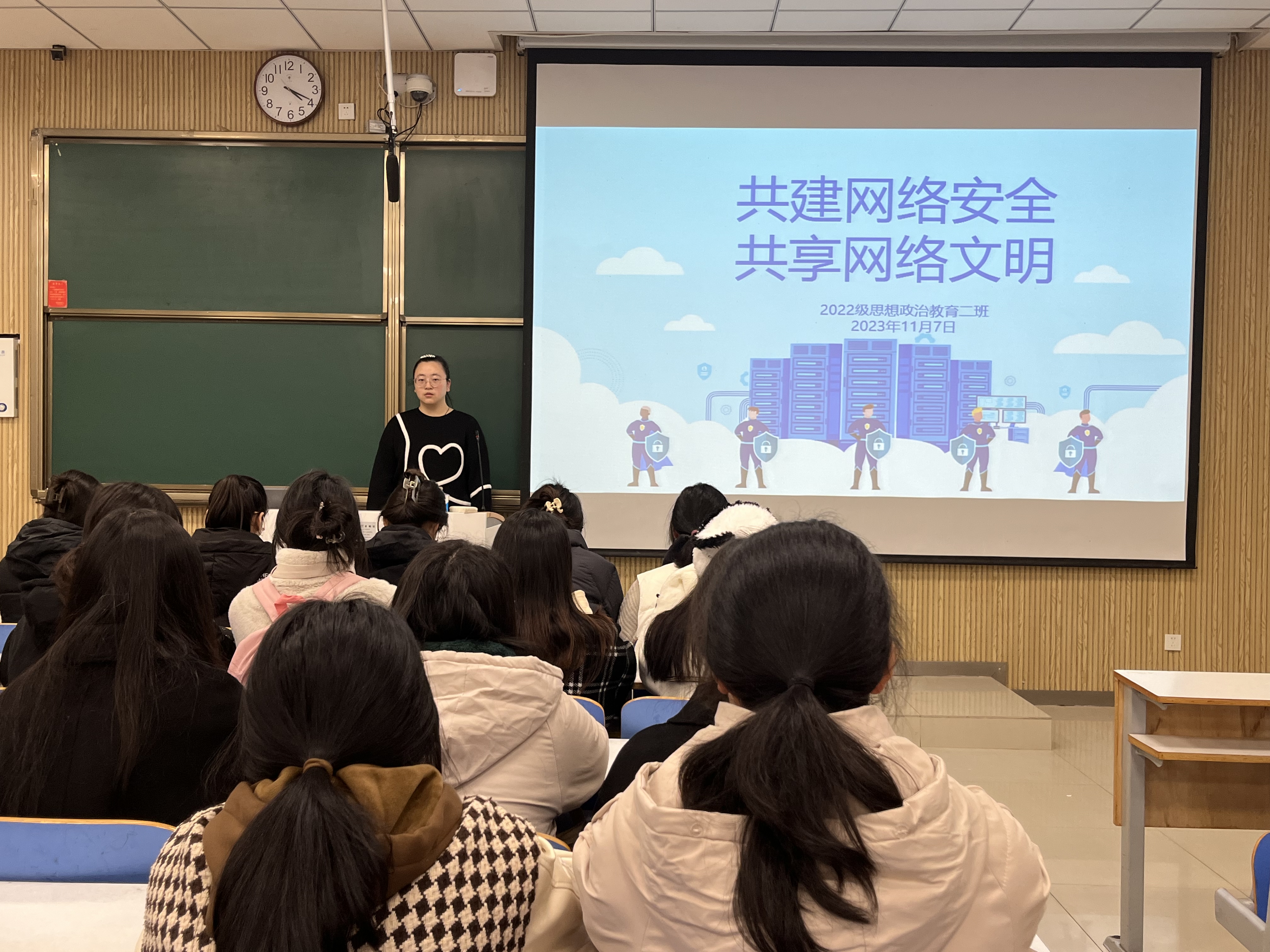 11月7日下午,pp电子官方网站2022级思想政治教育二班在社科楼515教室开展“共建网络安全,共享网络文明”主题团日活动。pp电子官网2022级思想政治教育二班全体成员共同参与此次团日活动。活动由团支书李佳音主持。
