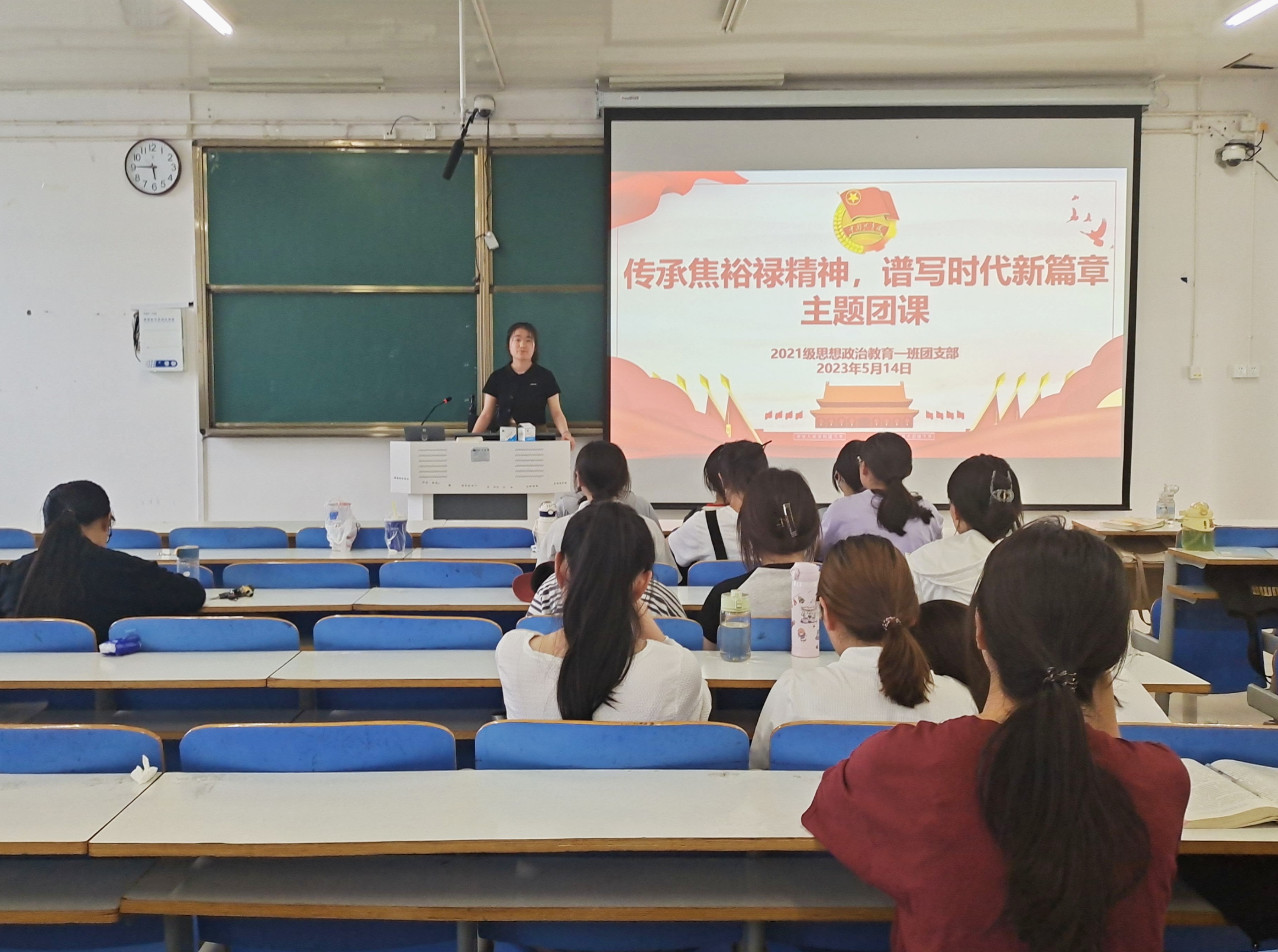 5月14日下午,pp电子官方网站2021级思想政治教育一班在社科楼514教室召开“传承焦裕禄精神,奋进新征程”主题团课。2021级思想政治教育一班全体团员共同参加了本次团课。团课由副班长雷敏主持。