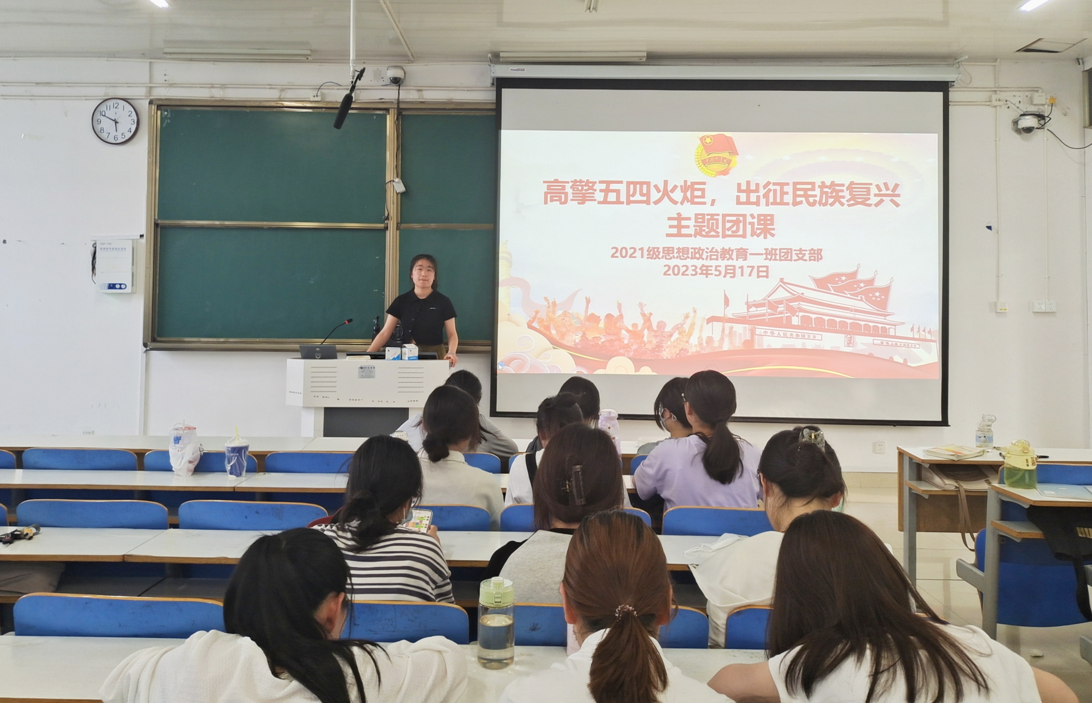 5月17日下午,pp电子官方网站2021级思想政治教育一班在社科楼514教室召开“高擎五四火炬,出征民族复兴”主题团课。2021级思想政治教育一班全体团员共同参加了本次团课。团课由副班长雷敏主持。