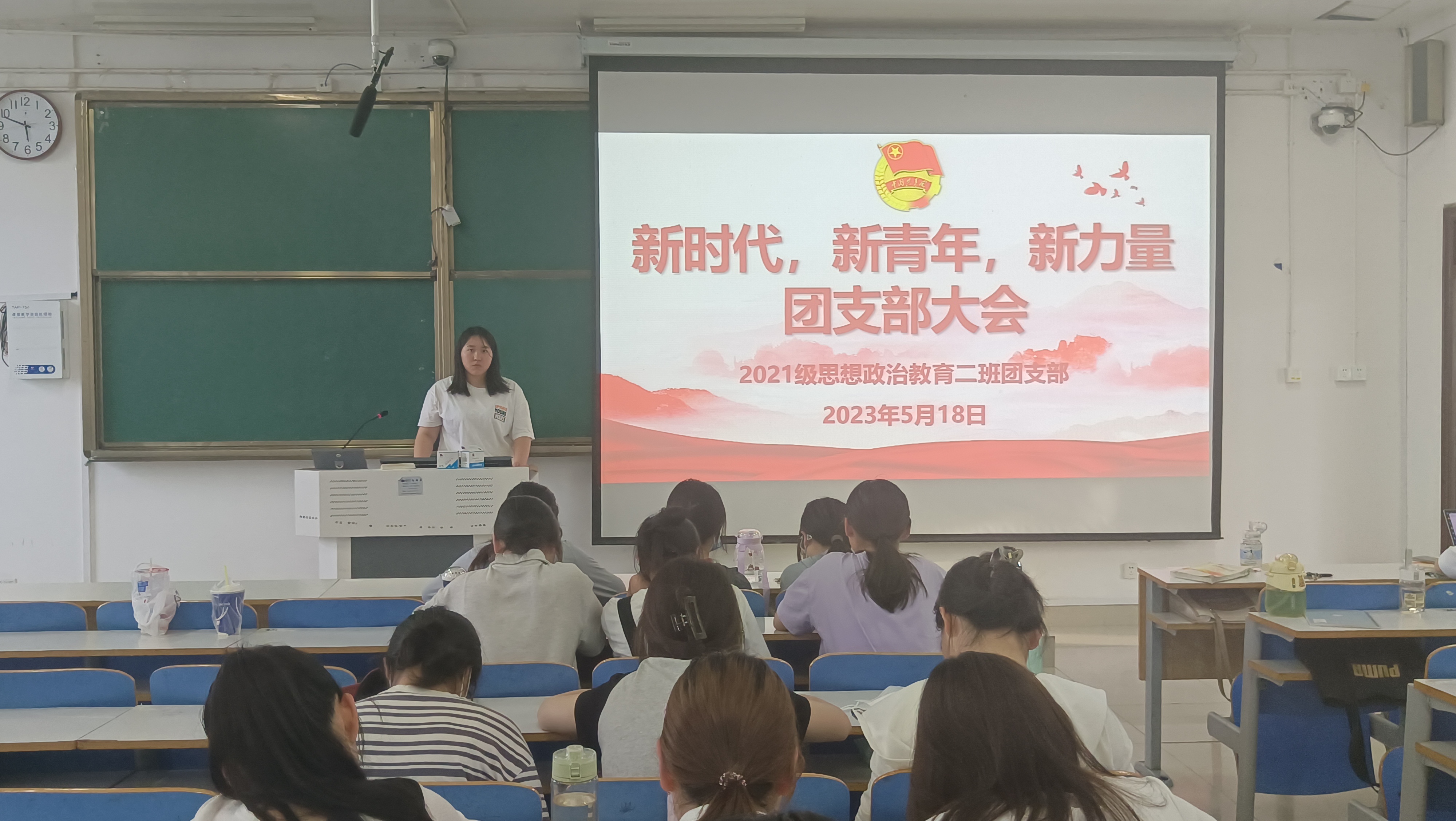 5月18日下午,pp电子官方网站2021级思想政治教育二班在社科楼514教室召开“新时代,新青年,新力量”团支部大会。2021级思想政治教育二班全体团员参加此次团支部大会。会议由团支书王婧欣主持。