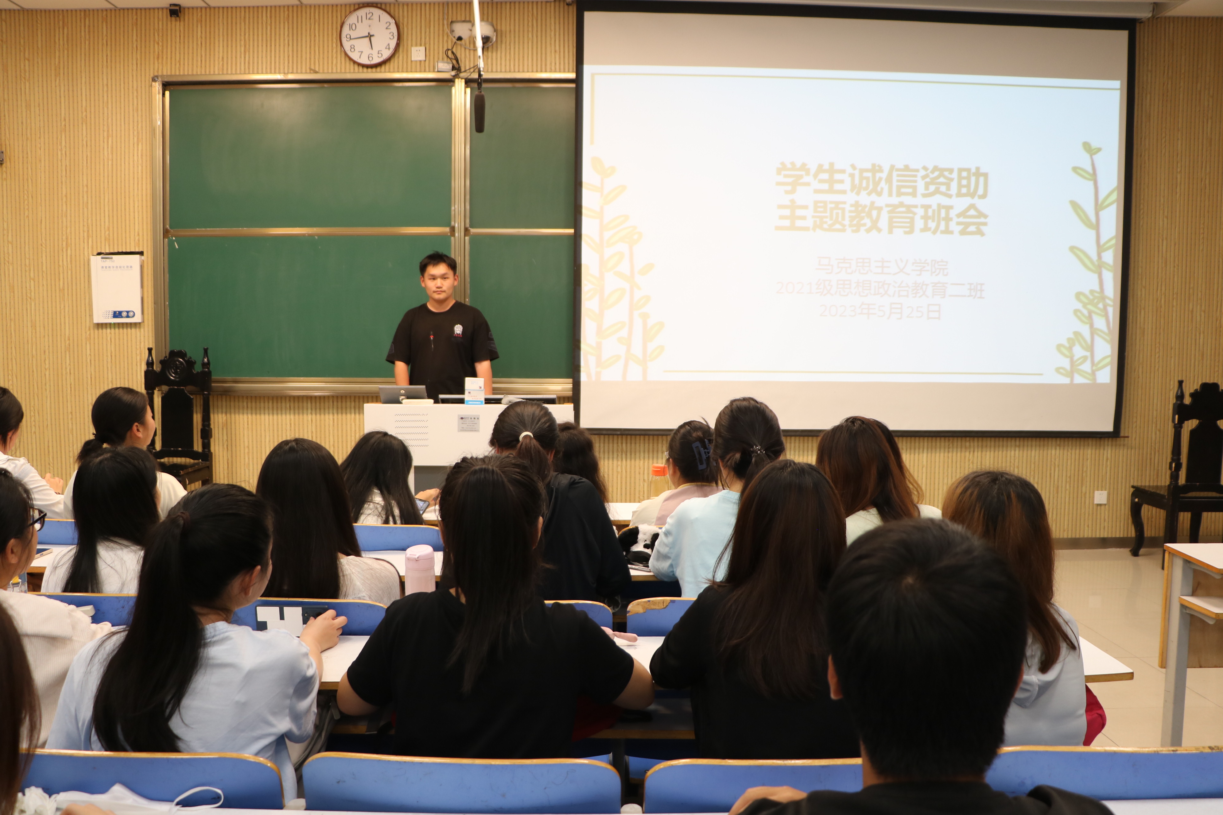 5月25日下午,pp电子官方网站2021级思想政治教育二班在社科楼515教室召开学生诚信资助主题教育班会。2021级思想政治教育二班全体同学参加此次主题班会。班会由副班长任振豪主持。