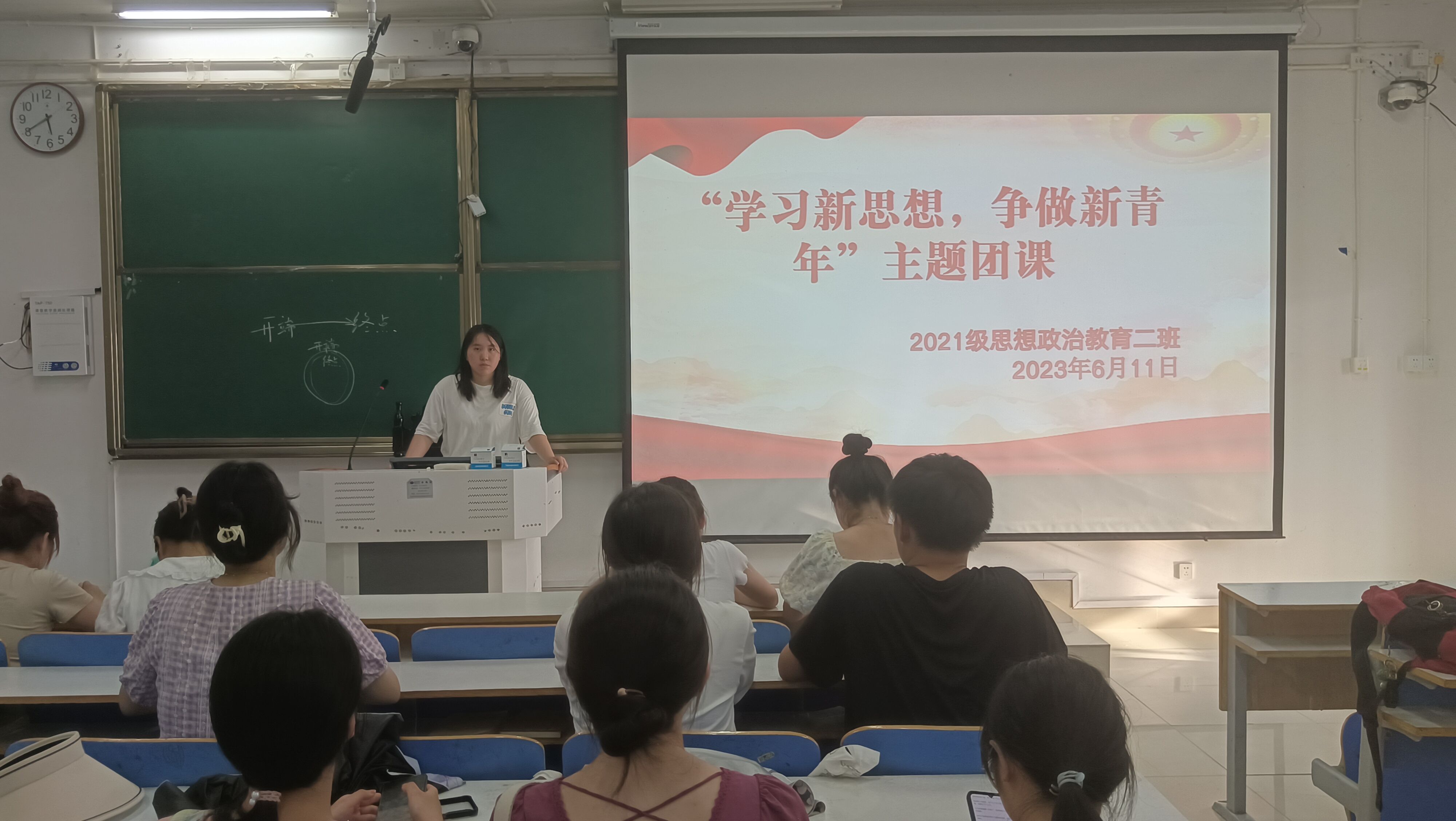 6月11日上午,pp电子官方网站2021级思想政治教育二班在社科楼514教室召开“学习新思想,争做新青年”主题团课。2021级思想政治教育二班全体团员参加此次团课。团课由团支书王婧欣主持。