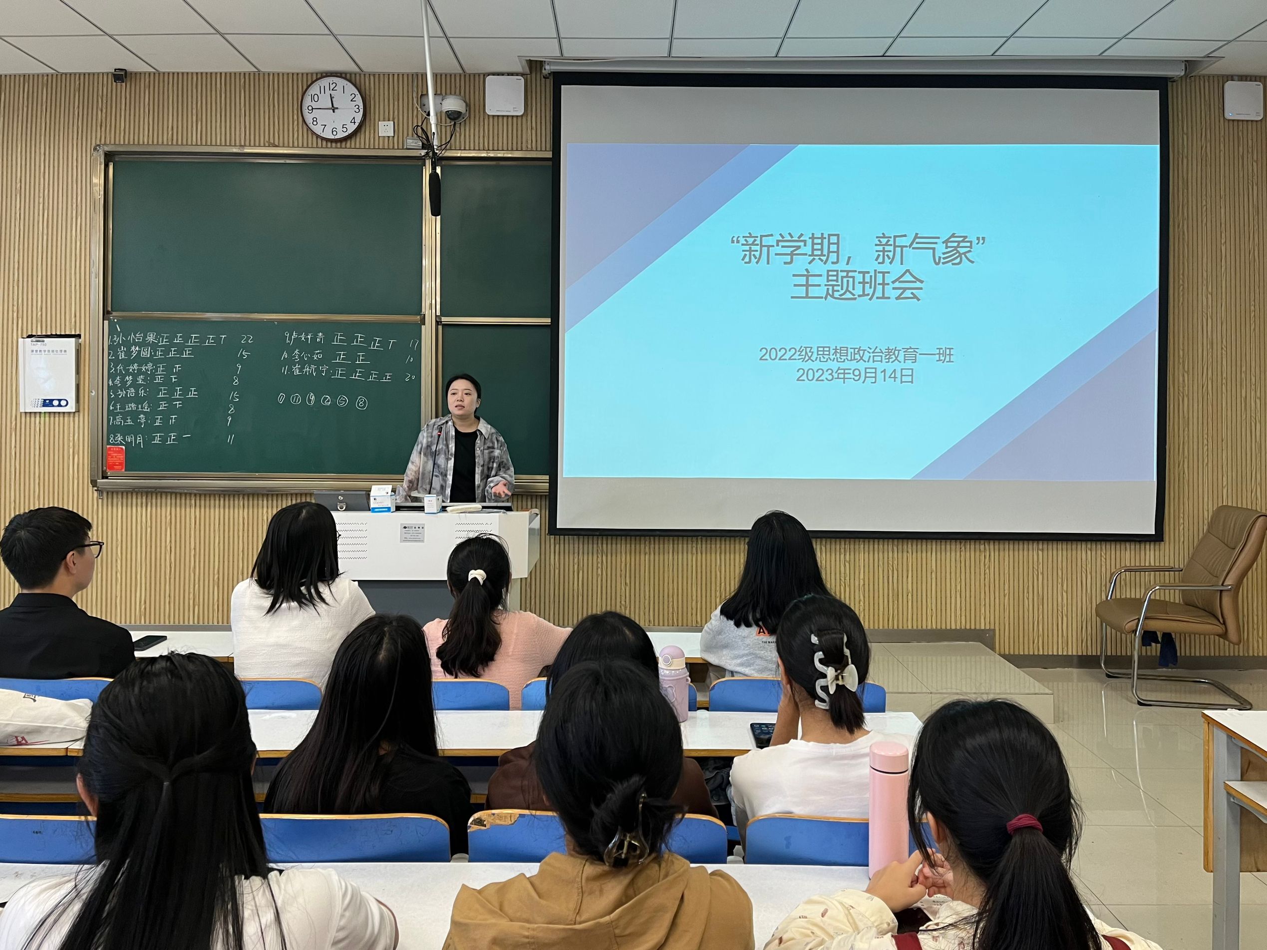 为顺利做好新学期开学准备工作,9月14日上午,pp电子官方网站2022级思想政治教育一班在社科楼515教室召开“新学期,新气象”主题班会。pp电子官网2022级思想政治教育一班班主任王明园和一班全体同学共同参与本次会议,会议由班主任王明园主持。