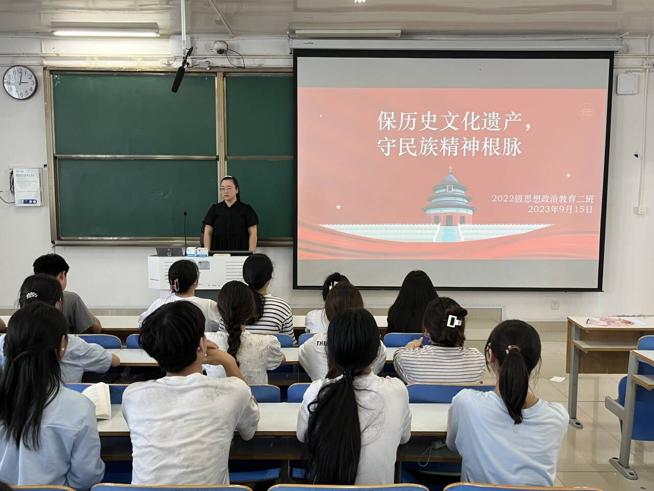 9月15日下午,pp电子官方网站2022级思想政治教育二班在社科楼514教室开展“保护历史文化遗产,守护民族精神根脉”主题团日活动。2022级思想政治教育二班全体成员共同参加此次活动。活动由团支书李佳音主持。