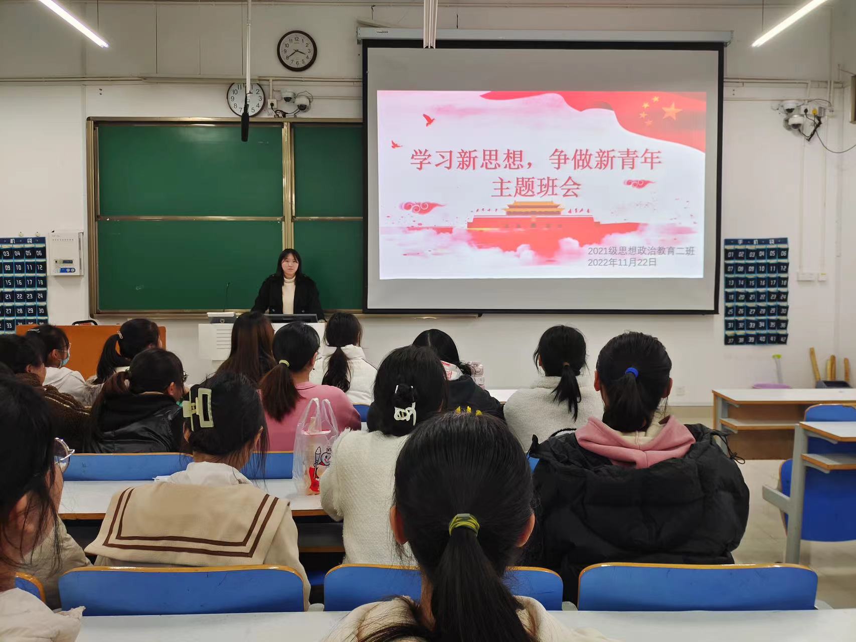 11月22日下午,pp电子官方网站2021级思想政治教育二班在社科楼514教室召开“学习新思想,争做新青年”主题班会。2021级思想政治教育二班全体成员共同参加此次班会。班会由团支书王婧欣主持。