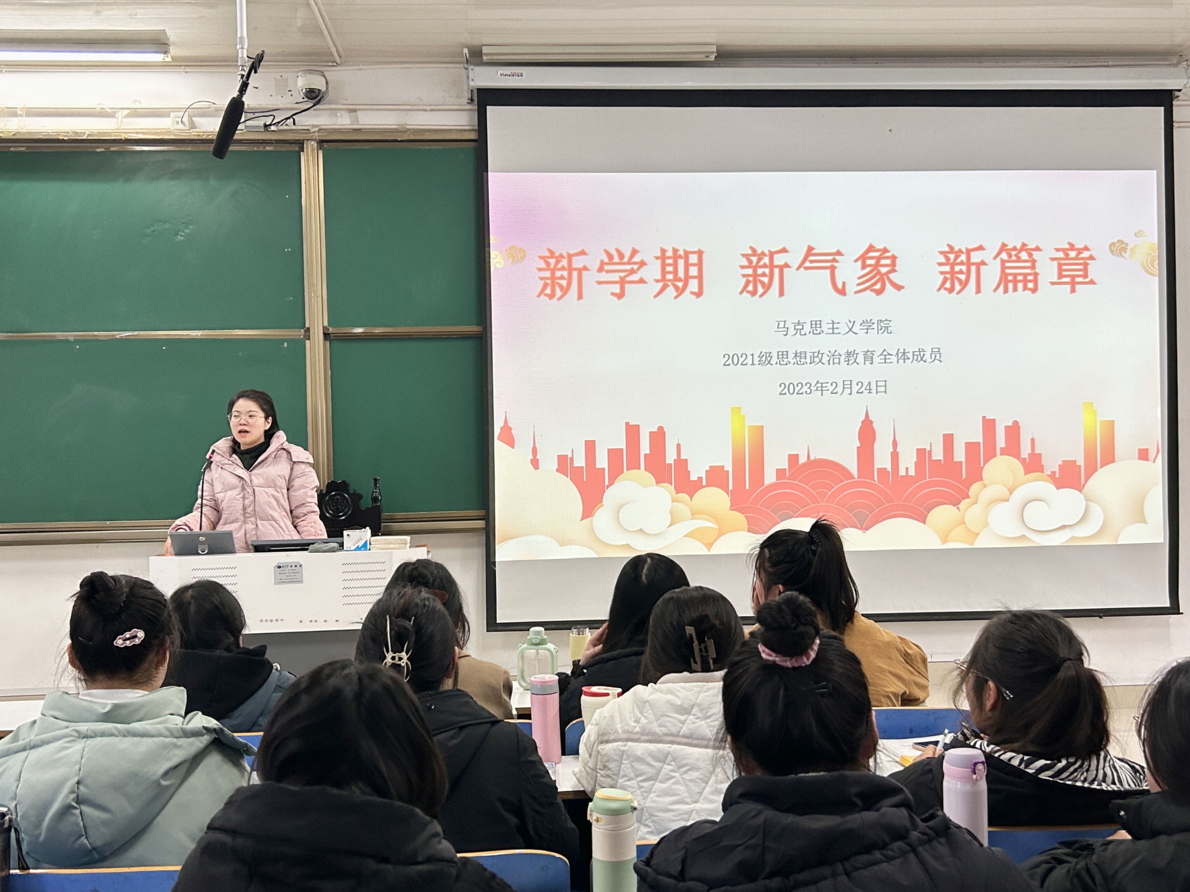 2月24日下午,pp电子官方网站2021级思想政治教育一班、二班在社科楼514教室召开“新学期、新气象、新篇章”主题班会。辅导员高小佳以及2021级思想政治教育全体成员共同参加本次班会。班会由辅导员高小佳主持。