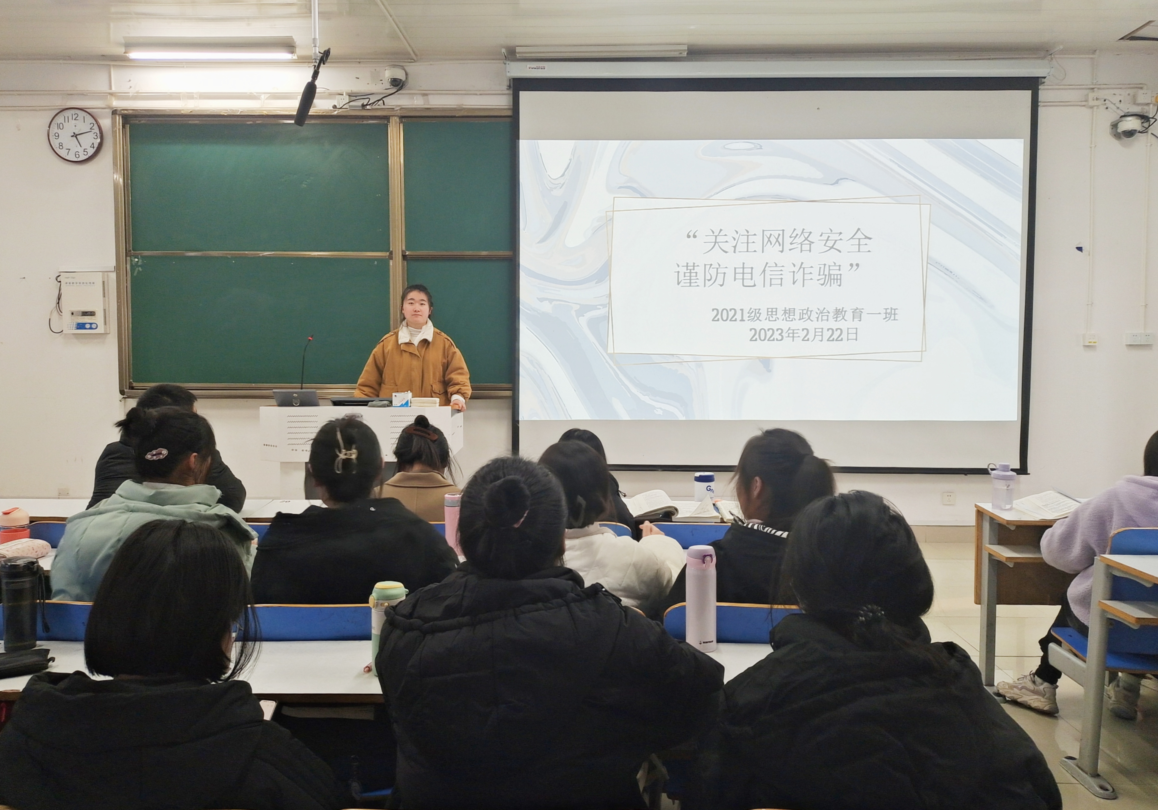 为进一步提高同学们对电信网络诈骗的防范意识,增强防范网络诈骗能力。2月22日下午,pp电子官方网站2021级思想政治教育一班在社科楼514教室召开“关注网络安全,谨防电信诈骗”主题班会。2021级思想政治教育一班全体成员共同参加本次班会。班会由副班长雷敏主持。
