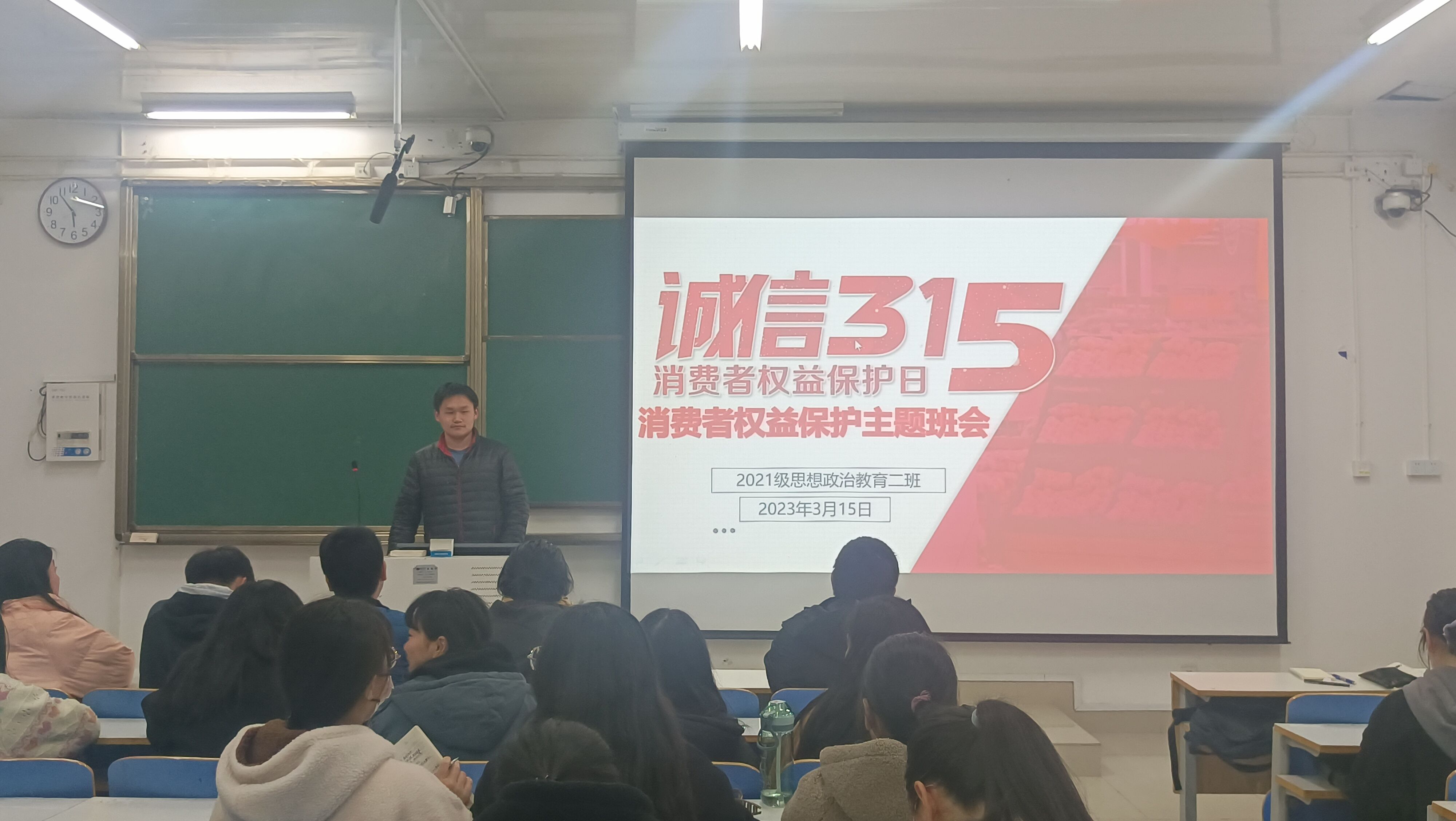 3月15日下午,pp电子官方网站2021级思想政治教育二班在社科楼514教室召开消费者权益保护主题班会。2021级思想政治教育二班全体同学参加此次主题班会。班会由副班长任振豪主持。
