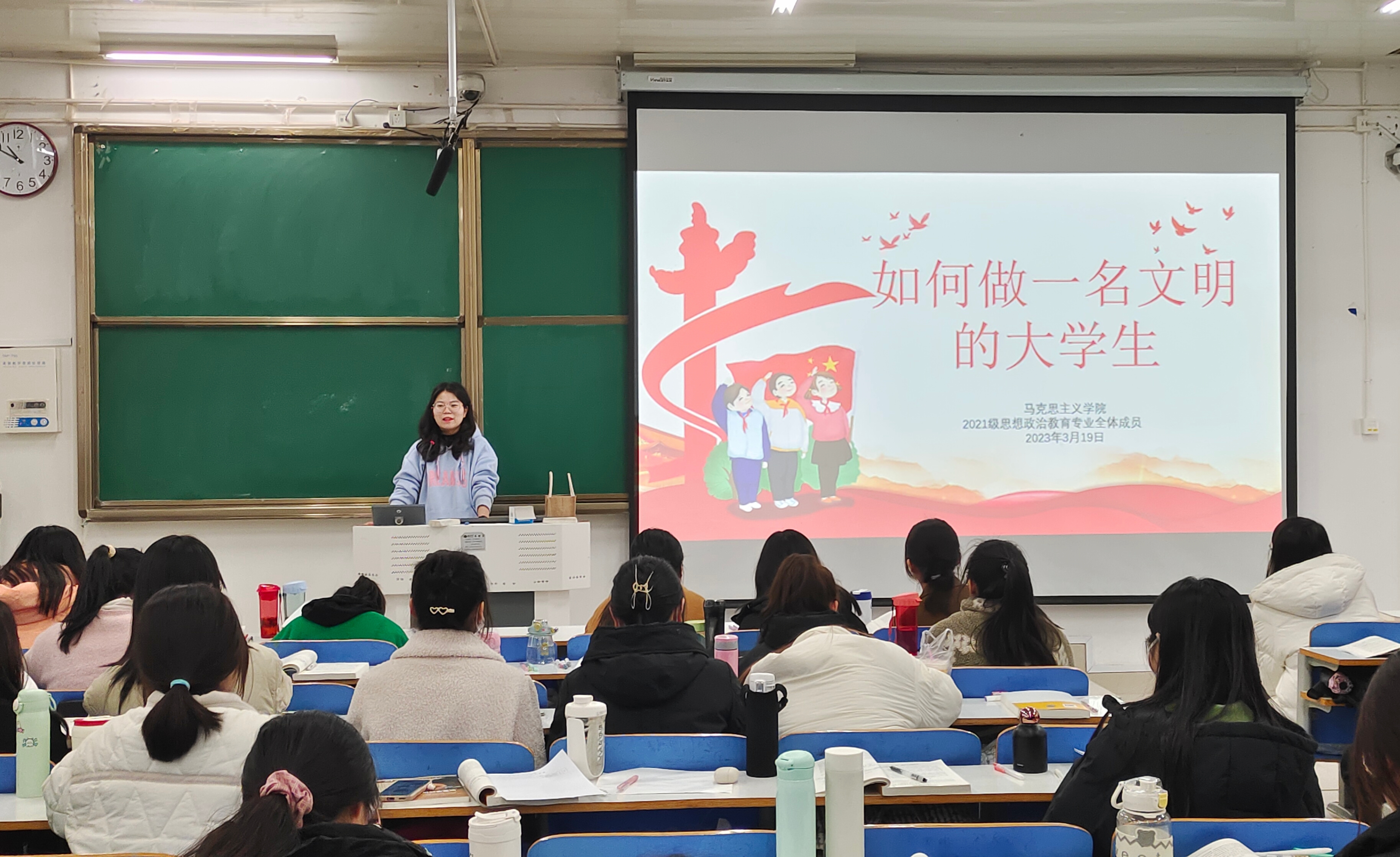 3月19日下午,pp电子官方网站2021级思想政治教育一班、二班召开“如何做一名文明大学生”主题班会。辅导员高小佳及2021级思想政治教育一班、二班共同参加本次班会。班会由辅导员高小佳主持。