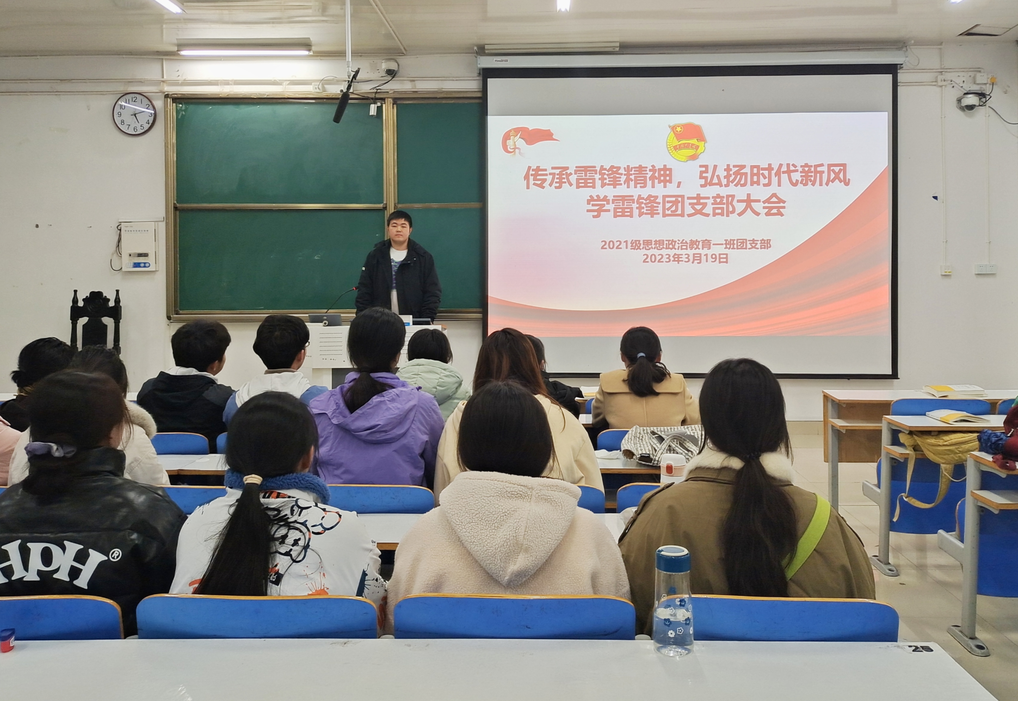 3月19日下午,pp电子官方网站2021级思想政治教育一班在社科楼515教室召开“传承雷锋精神,弘扬时代新风”学雷锋团支部大会。2021级思想政治教育一班全体团员共同参加了本次会议。会议由团支书戴翰林主持。