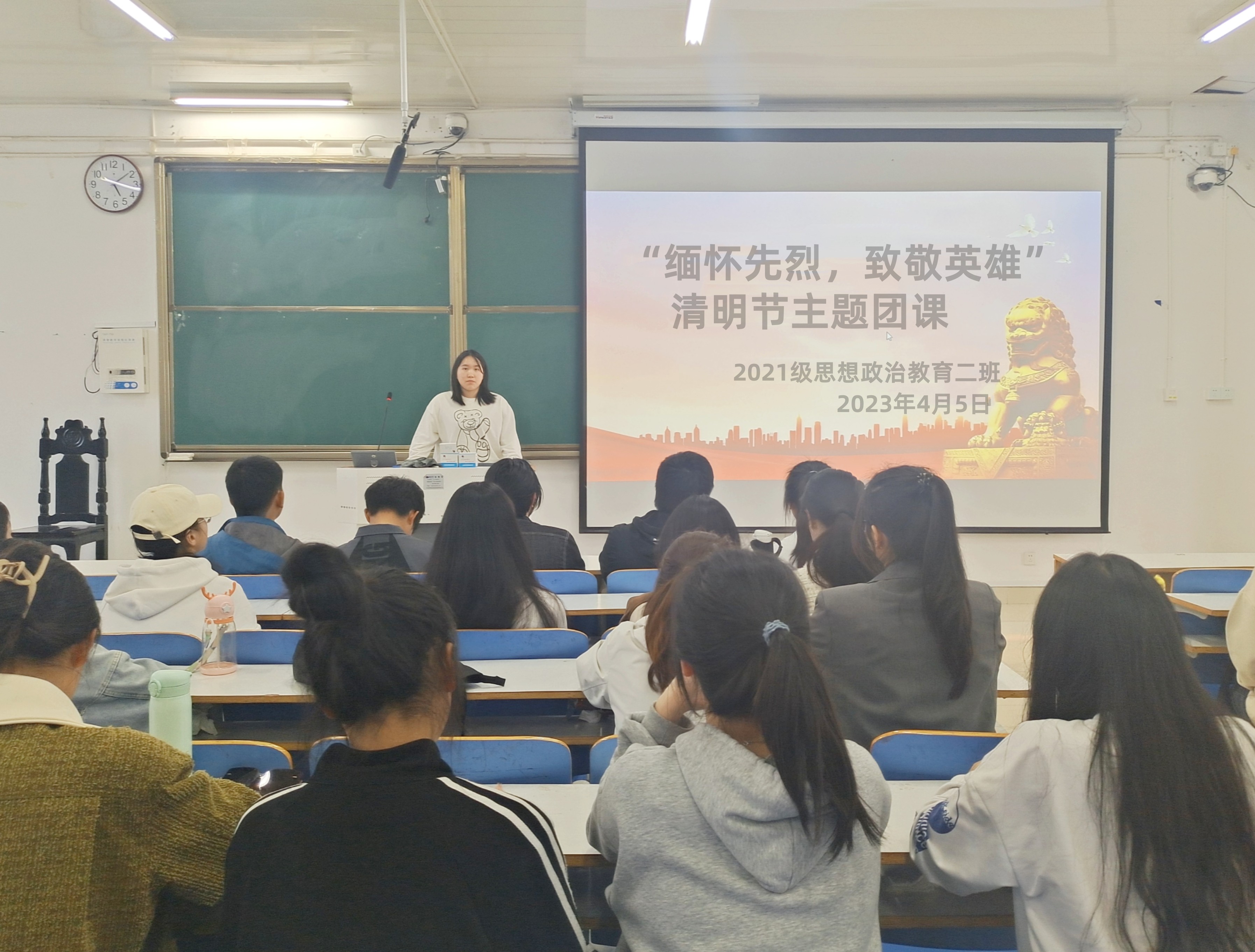 4月5日下午,pp电子官方网站2021级思想政治教育二班在社科楼514教室召开“缅怀先烈,致敬英雄”清明节主题团课。2021级思想政治教育二班全体团员参加此次主题团课。团课由团支书王婧欣主持。