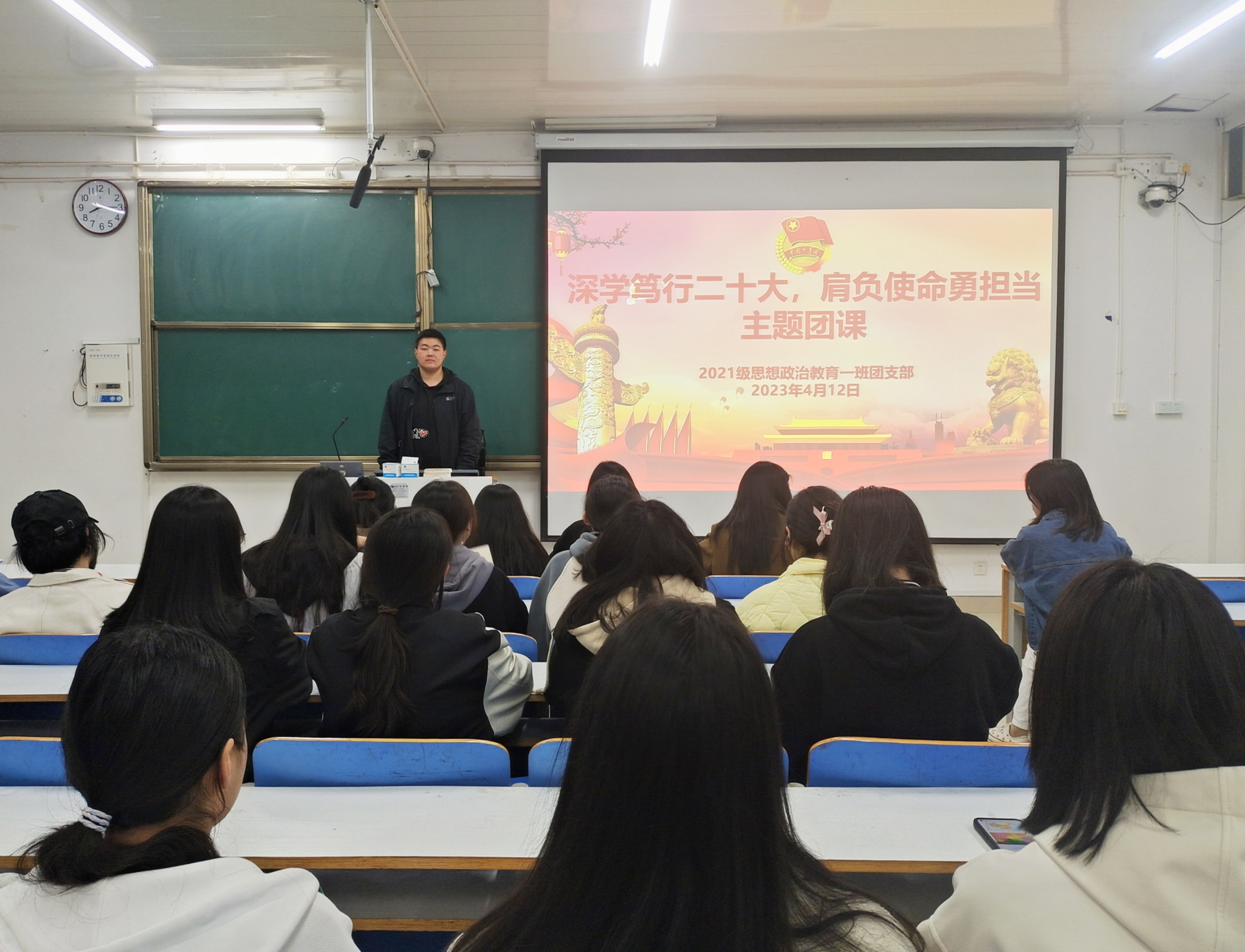 为强化对青年团员的思想政治引领,引导动员青年团员学习党的二十大精神,坚定跟党走,建功新时代,4月12日晚上,pp电子官方网站2021级思想政治教育一班在社科楼514教室召开“学习笃行二十大,肩负使命勇担当”主题团课。2021级思想政治教育一班全体团员参加了本次团课。团课由团支书戴翰林主持。