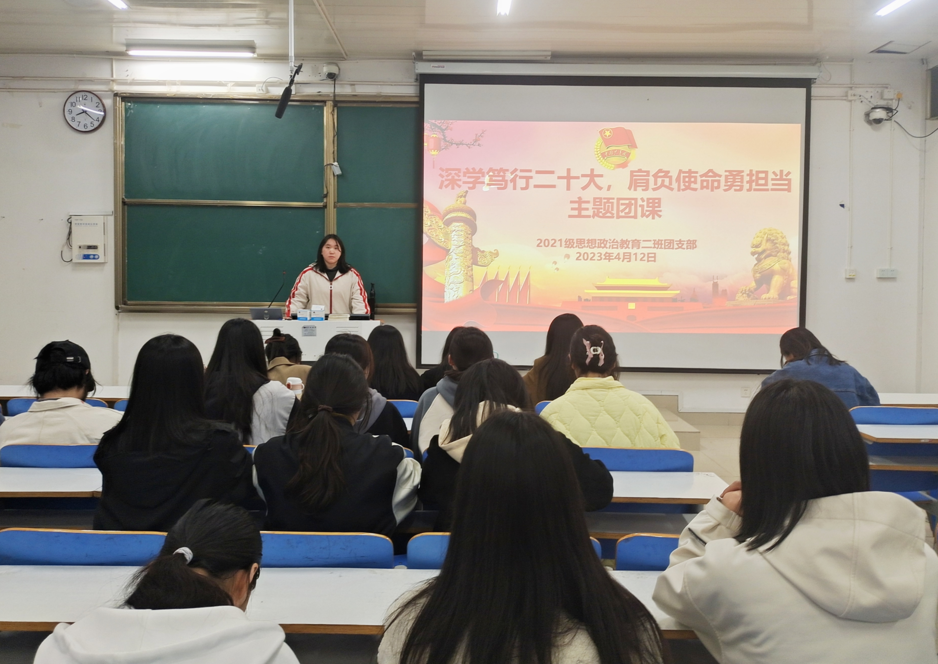4月12日下午,pp电子官方网站2021级思想政治教育二班在社科楼514教室召开“深学笃行二十大,肩负使命勇担当”主题团课。2021级思想政治教育二班全体团员参加此次团课。团课由团支书王婧欣主持。