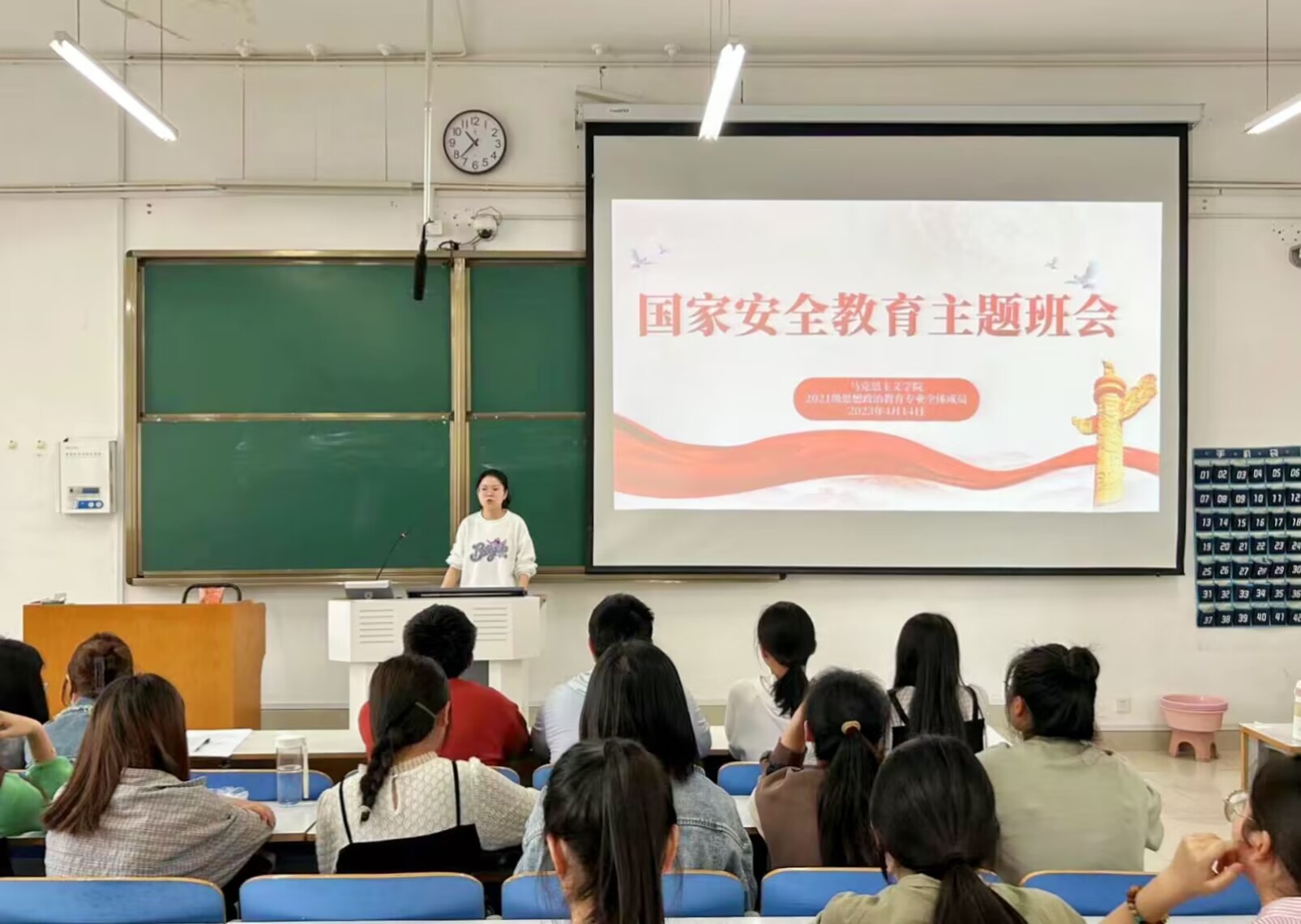 国家安全是安邦定国、民族复兴的重要基石。4月14日下午,pp电子官方网站2021级思想政治教育一班、二班在社科楼514教室举办国家安全教育主题班会。辅导员高小佳以及pp电子官方网站2021级思想政治教育一班、二班全体成员参与此次会议。会议由辅导员高小佳主持。