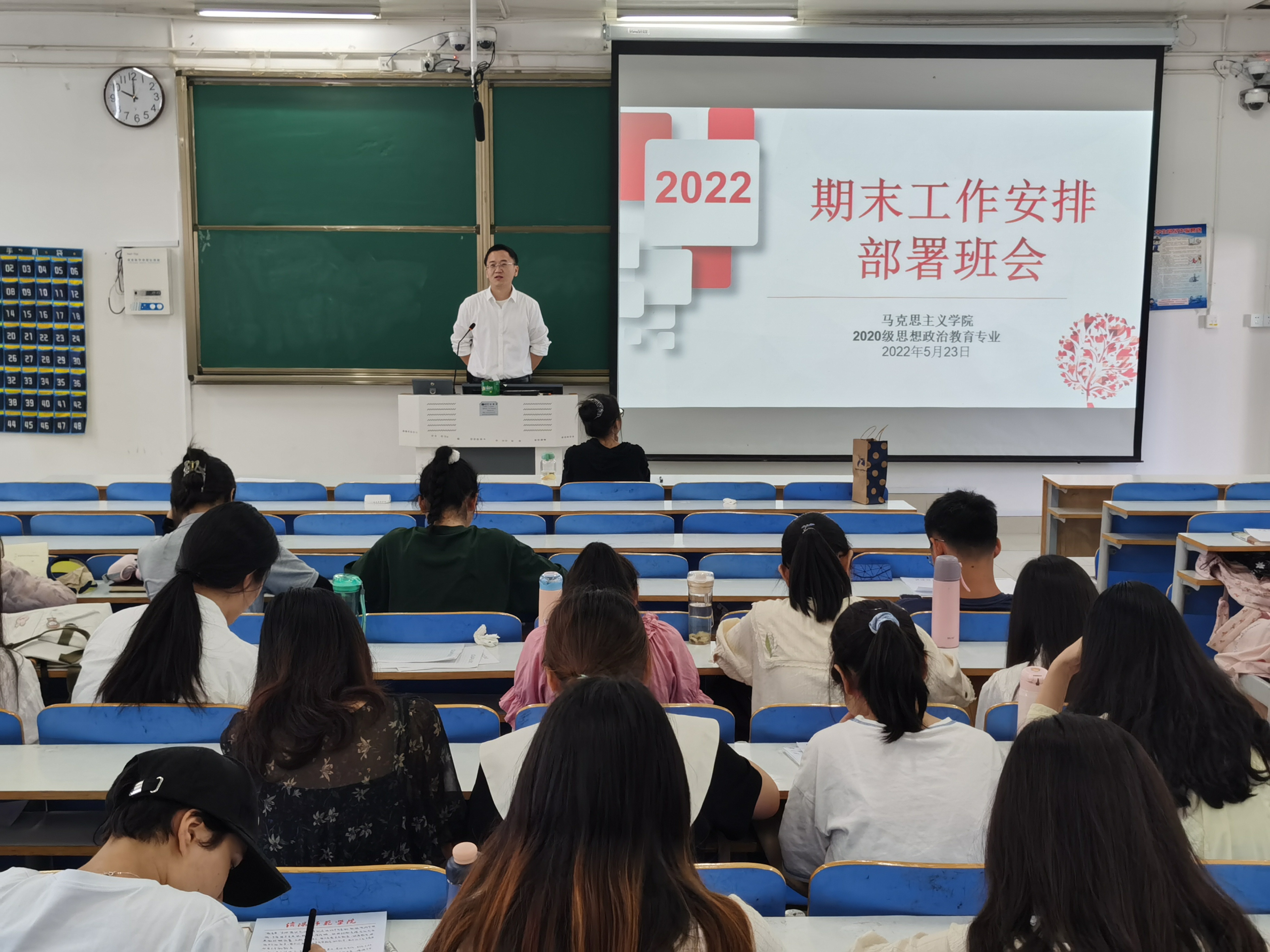 5月23日上午,pp电子官方网站2020级思想政治教育普通一班、定向一班在社科楼514教室召开期末安排部署主题班会。pp电子官方网站2020级思想政治教育一班、定向一班参加了此次班会。