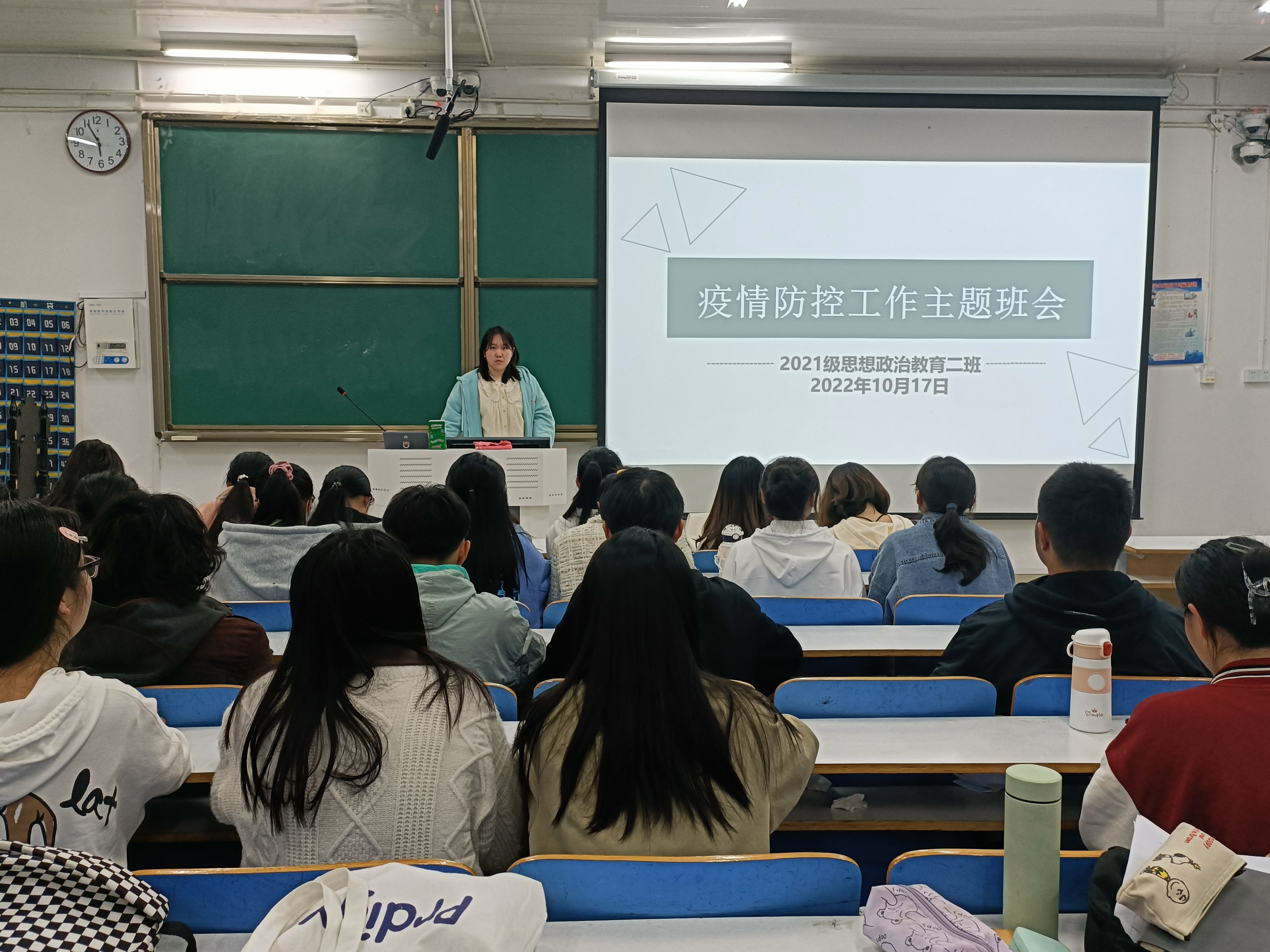 10月17日上午,pp电子官方网站2021级思想政治教育二班在社科楼514教室召开疫情防控工作主题班会。2021级思想政治教育二班全体成员参加此次班会。班会由团支书王婧欣主持。