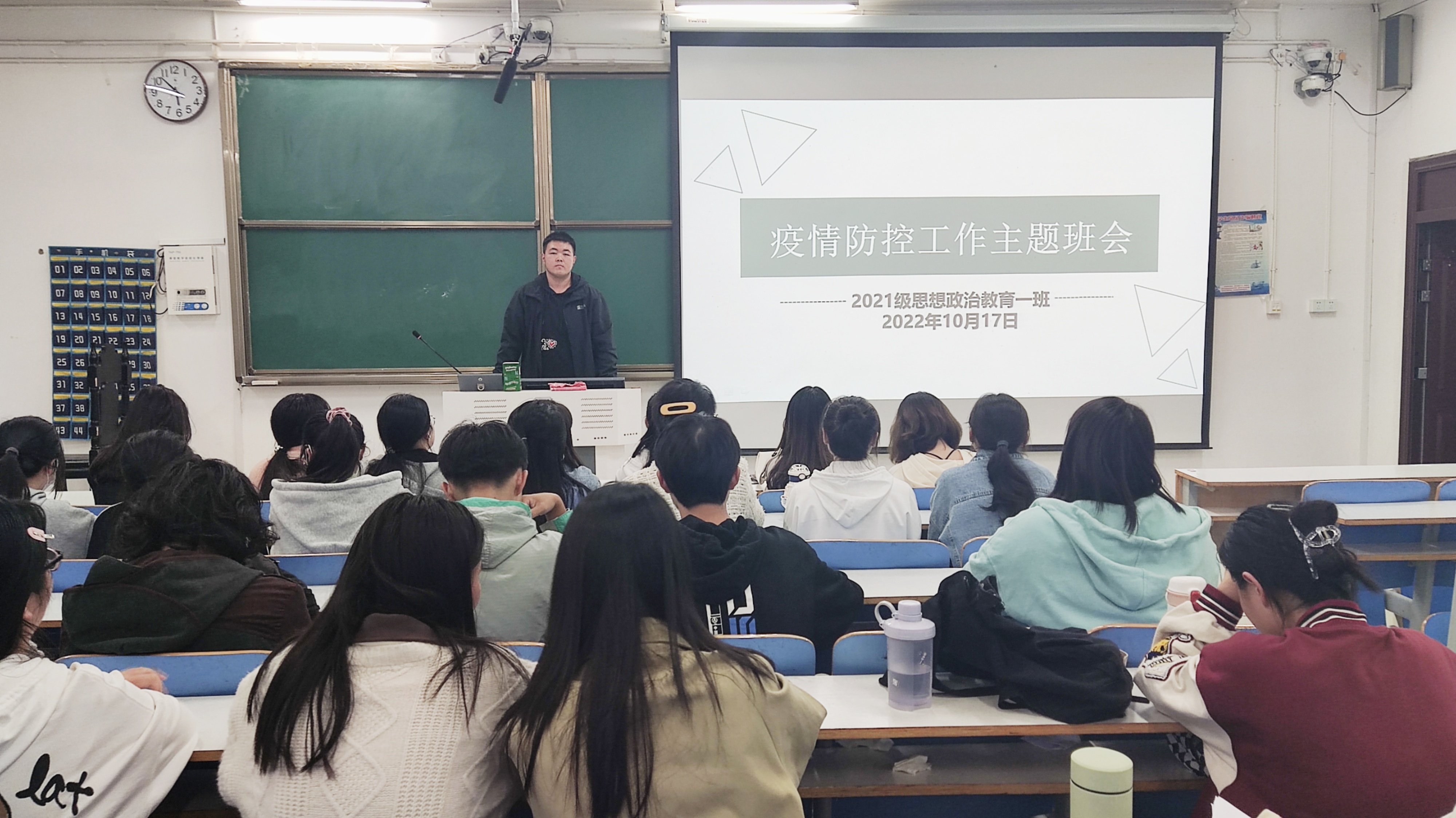 10月17日下午,pp电子官方网站2021级思想政治教育一班在社科楼514教室召开“疫情防控工作”主题班会。2021级思想政治教育一班全体成员共同参与了本次班会。班会由团支书戴翰林主持。