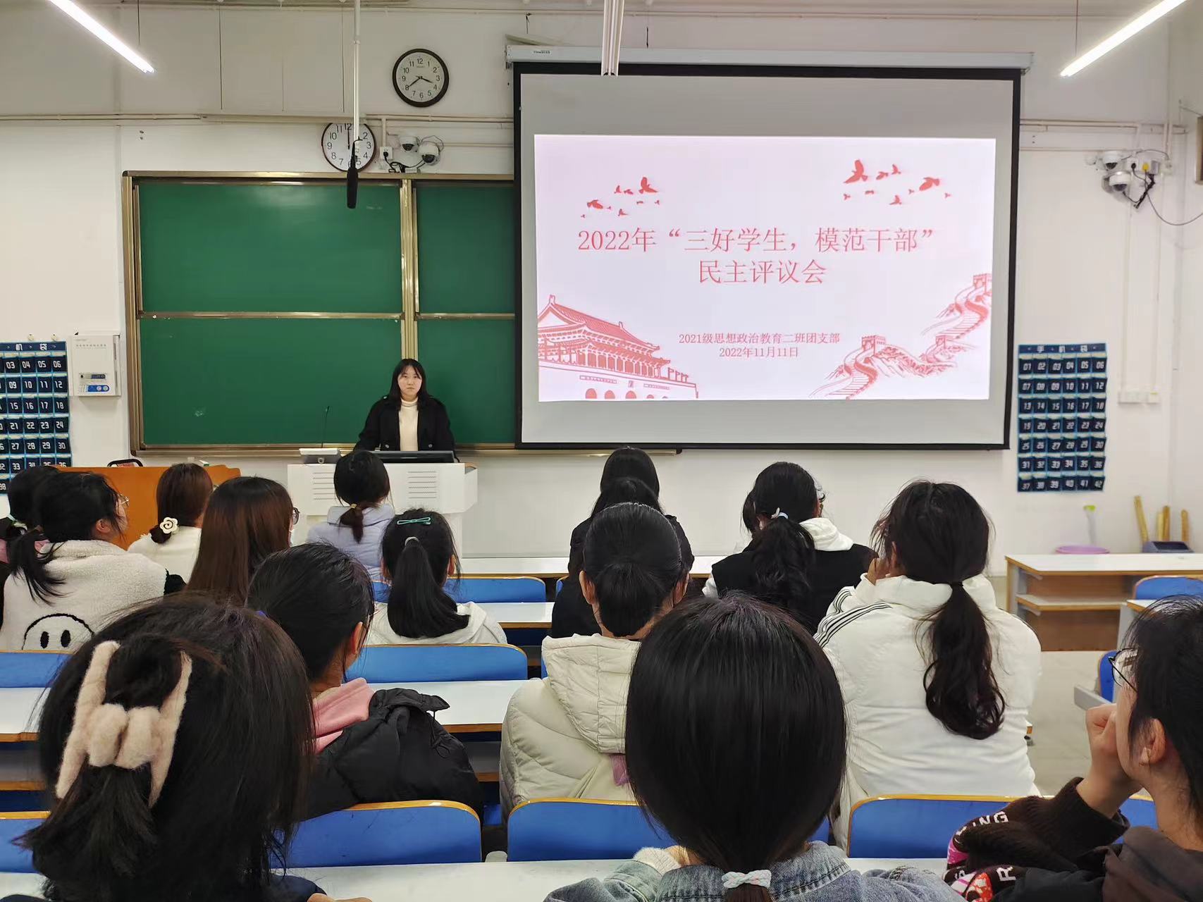 11月11日下午,pp电子官方网站2021级思想政治教育二班在社科楼514教室召开2022年“三好学生,模范干部”民主评议会。2021级思想政治教育二班全体成员共同参加此次民主评议会。评议会由团支书王婧欣主持。