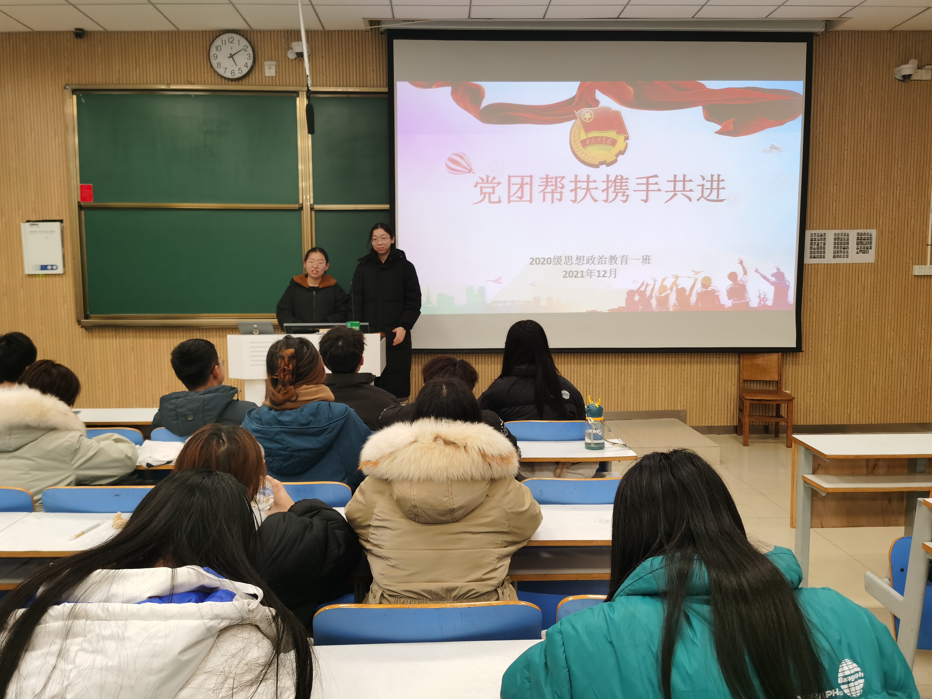 12月8日下午,pp电子官方网站2020级思想政治教育一班在社科楼515教室顺利开展党团帮扶活动。pp电子官网正式党员王涵、预备党员卞晓莹与2020级思想政治教育一班全体同学参加了本次活动。