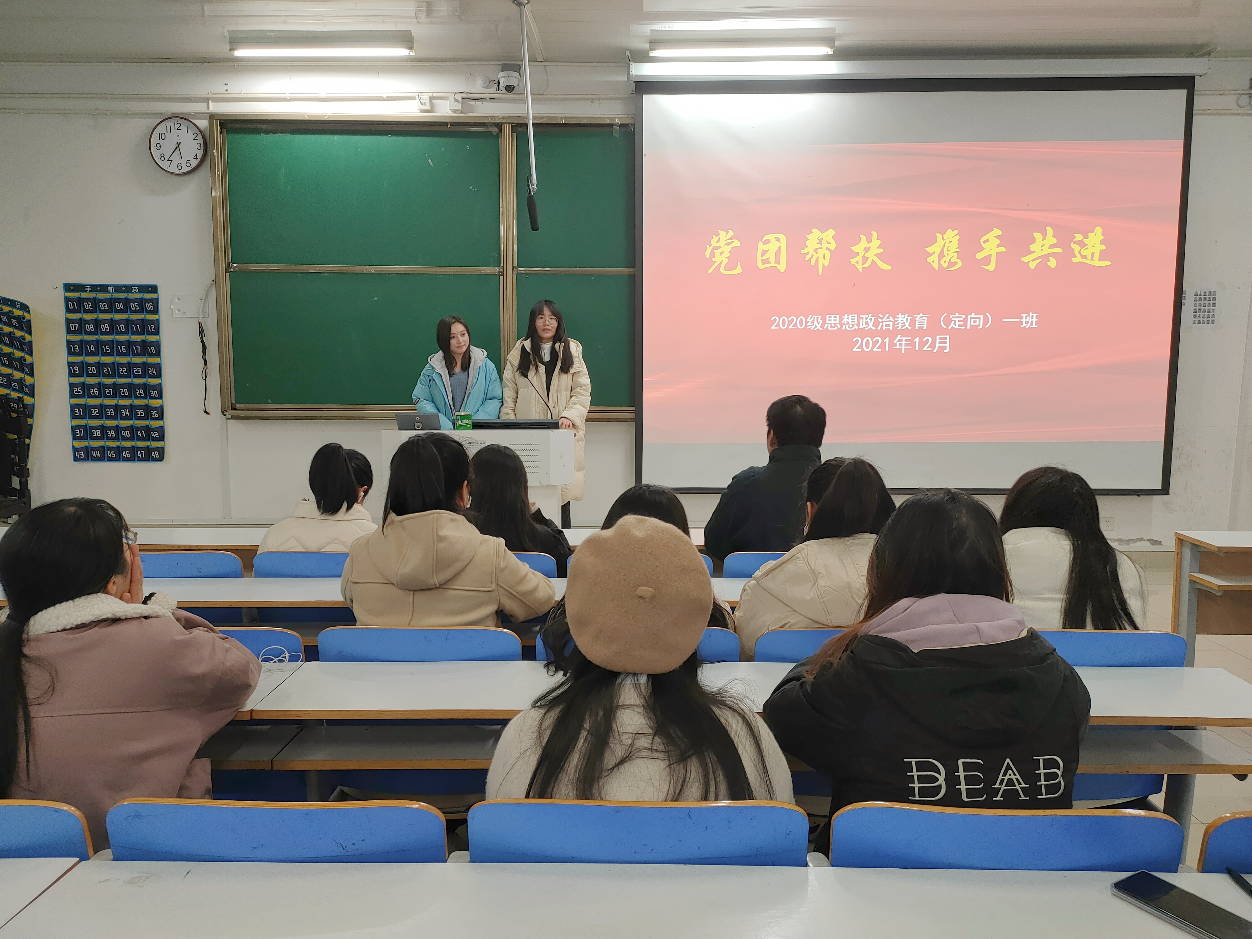 12月10日下午,pp电子官方网站2020级思想政治教育定向一班“党团帮扶,携手共进”班会在社科楼516教室举办。pp电子官方网站思想政治教育定向一班团支部全体成员参与了本次活动。