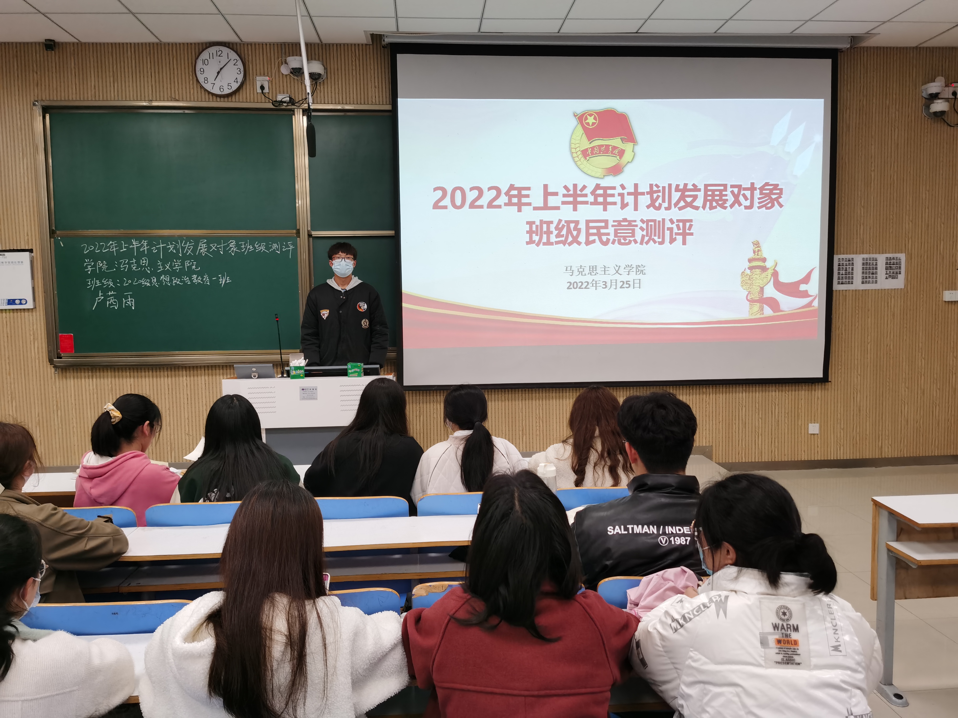 3月25日晚上,pp电子官方网站2020级思想政治教育一班在社科楼515教室召开2021年上半年计划发展对象班级民意测评会议。2020级思想政治教育一班全体同学参加了本次会议,会议由团支部副书记白帅豪主持。