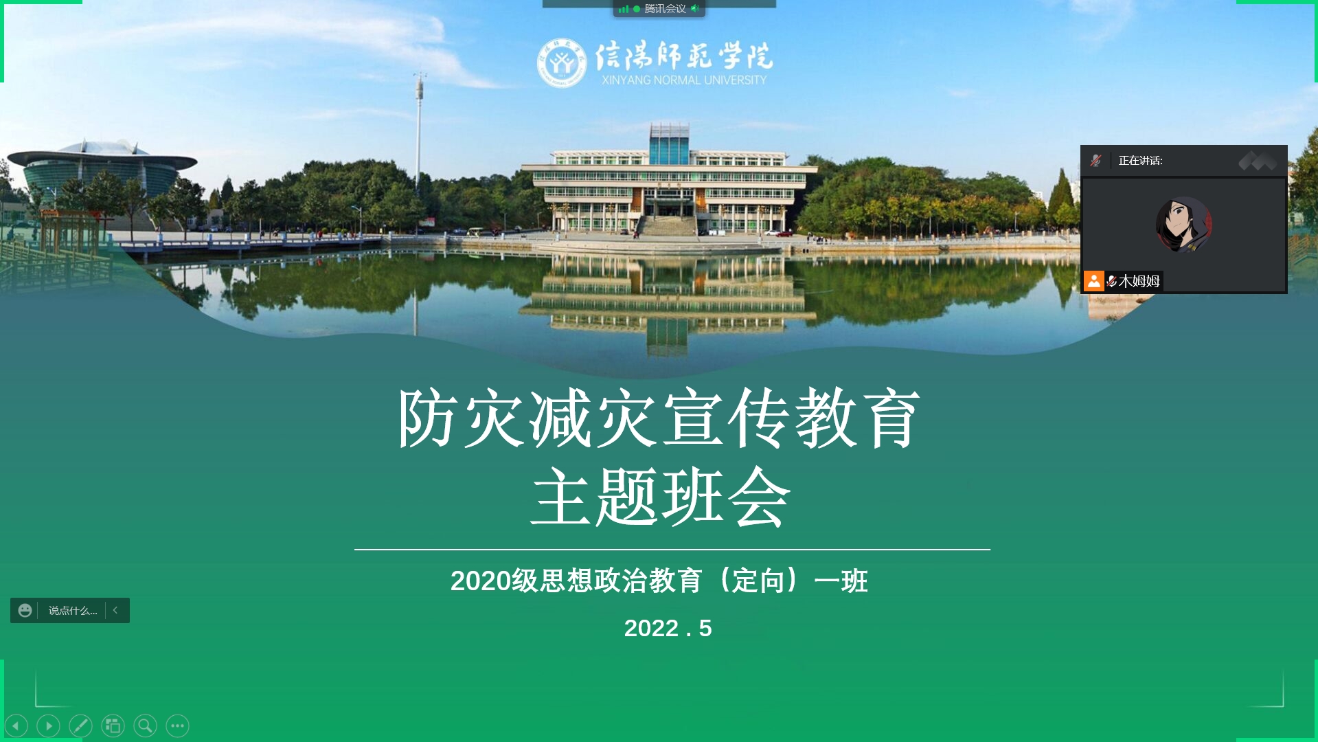 5月17日晚,pp电子官方网站2020级思想政治教育定向一班以线上的方式开展了以“防灾减灾宣传教育”为主题的班会。
