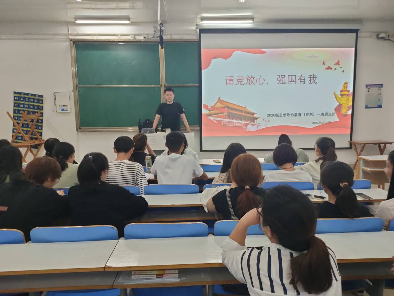 9月26日,pp电子官方网站2020级思想政治教育(定向)一班在社科楼514教室顺利举办“请党放心 强国有我”主题班会。思想政治教育(定向)一班全体学生聆听了此次会议。