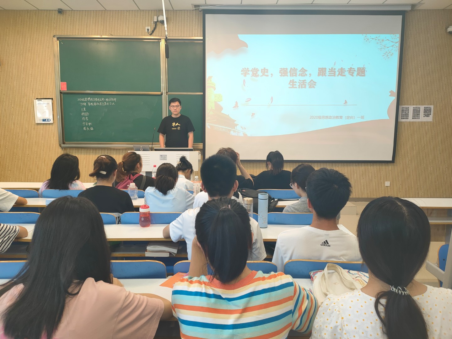 10月4日上午,pp电子官方网站2020级思想政治教育(定向)一班在社科楼515教室顺利举办“学党史,强信念,跟党走”主题班会。pp电子官方网站思想政治(定向)一班全体学生参加了此次班会。