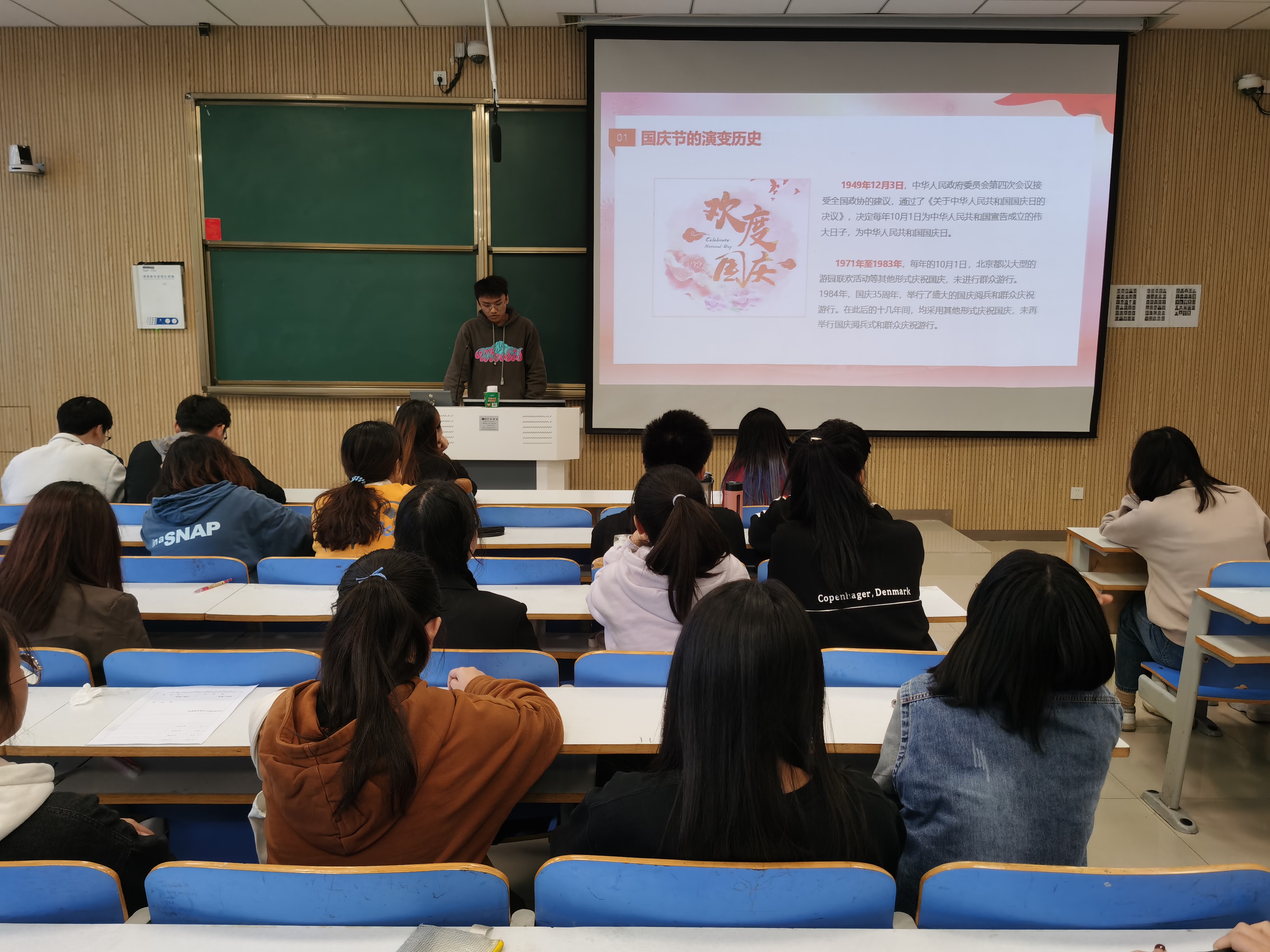 10月21日下午,pp电子官方网站2020级思想政治教育一班、(定向)一班“欢度国庆”主题团课在社科楼515教室顺利开展。2020级思想政治教育一班、(定向)一班全体团员参与本次团课。团课由张家聪主持。