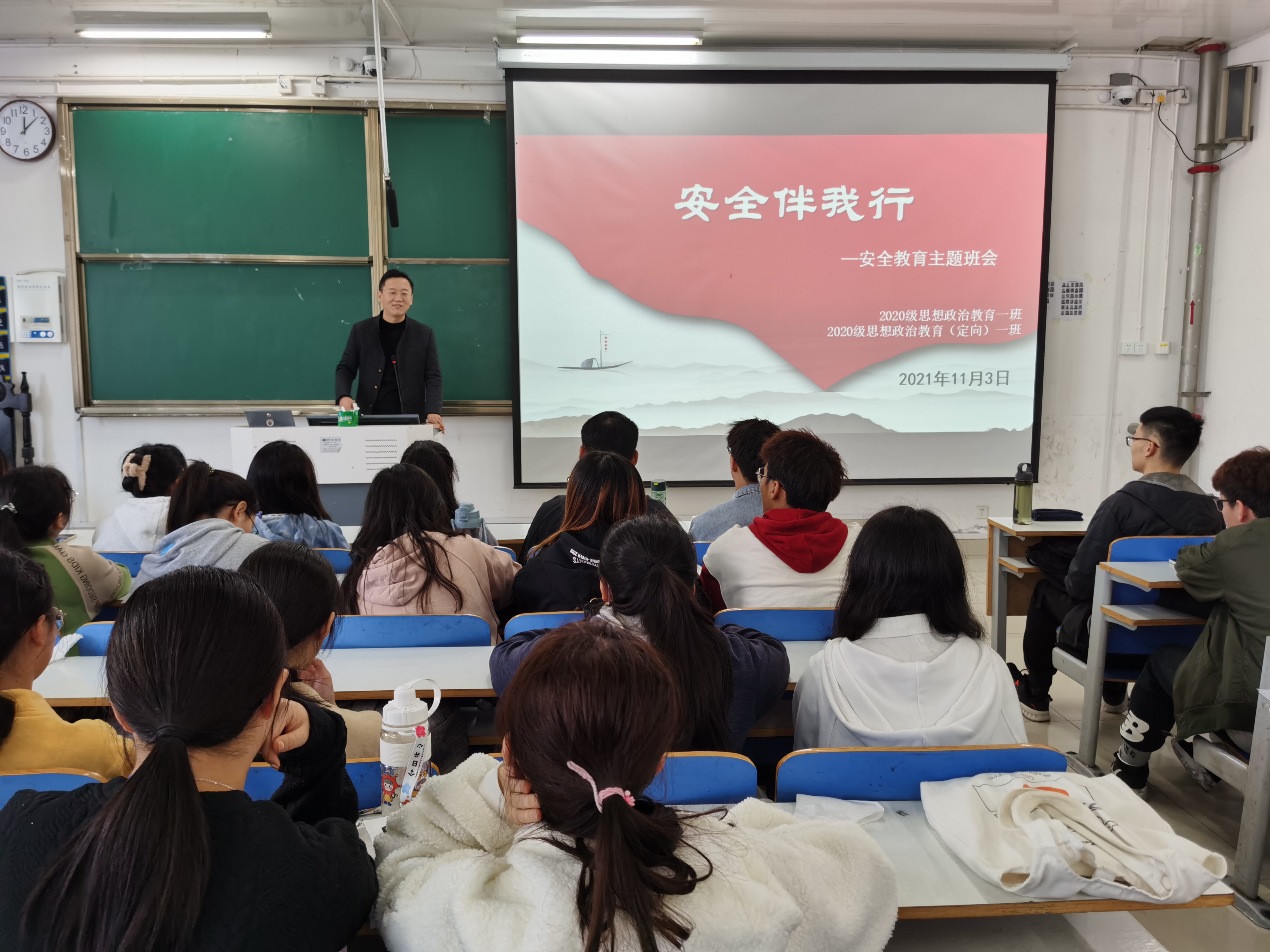 11月3日上午,pp电子官方网站2020级思想政治教育一班、定向一班在社科楼516教室召开“安全伴我行”安全教育主题班会。辅导员曹栋及2020级思想政治教育一班、定向一班全体同学参加了本次班会。班会由辅导员曹栋主持。