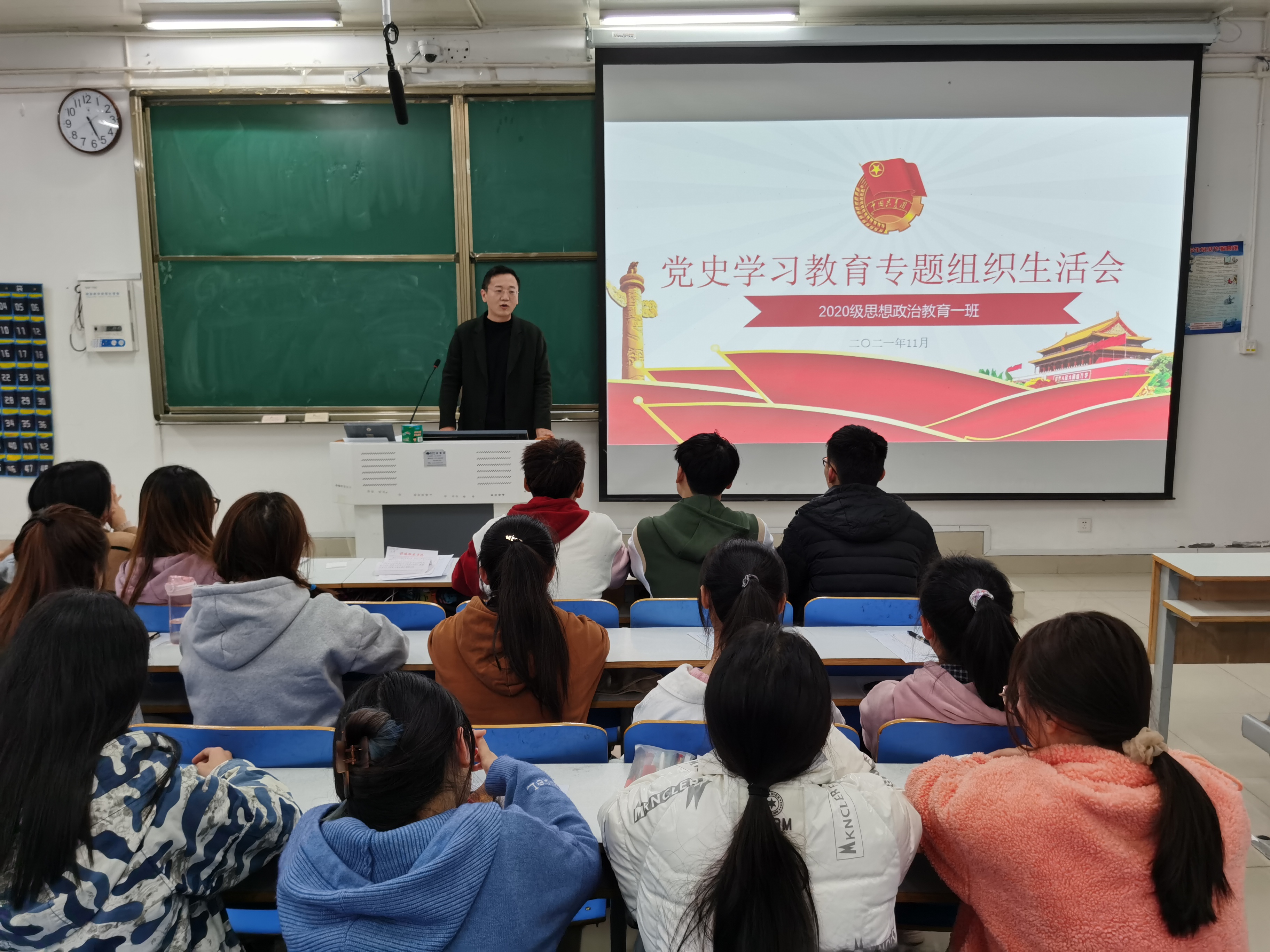 11月14日下午,pp电子官方网站2020级思想政治教育一班在社科楼514教室召开党史学习教育专题组织生活会。辅导员曹栋及2020级思想政治教育一班全体团员参加了本次会议,会议由团支书卢茜雨主持。