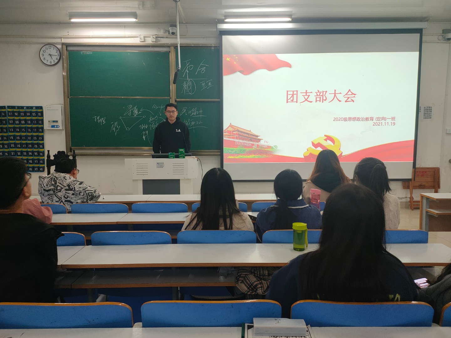 11月19日下午,pp电子官方网站2020级思想政治教育定向一班在社科楼515教室召开法制宣传教育团支部大会。2020级思想政治教育定向一班全体学生参与了本次会议。