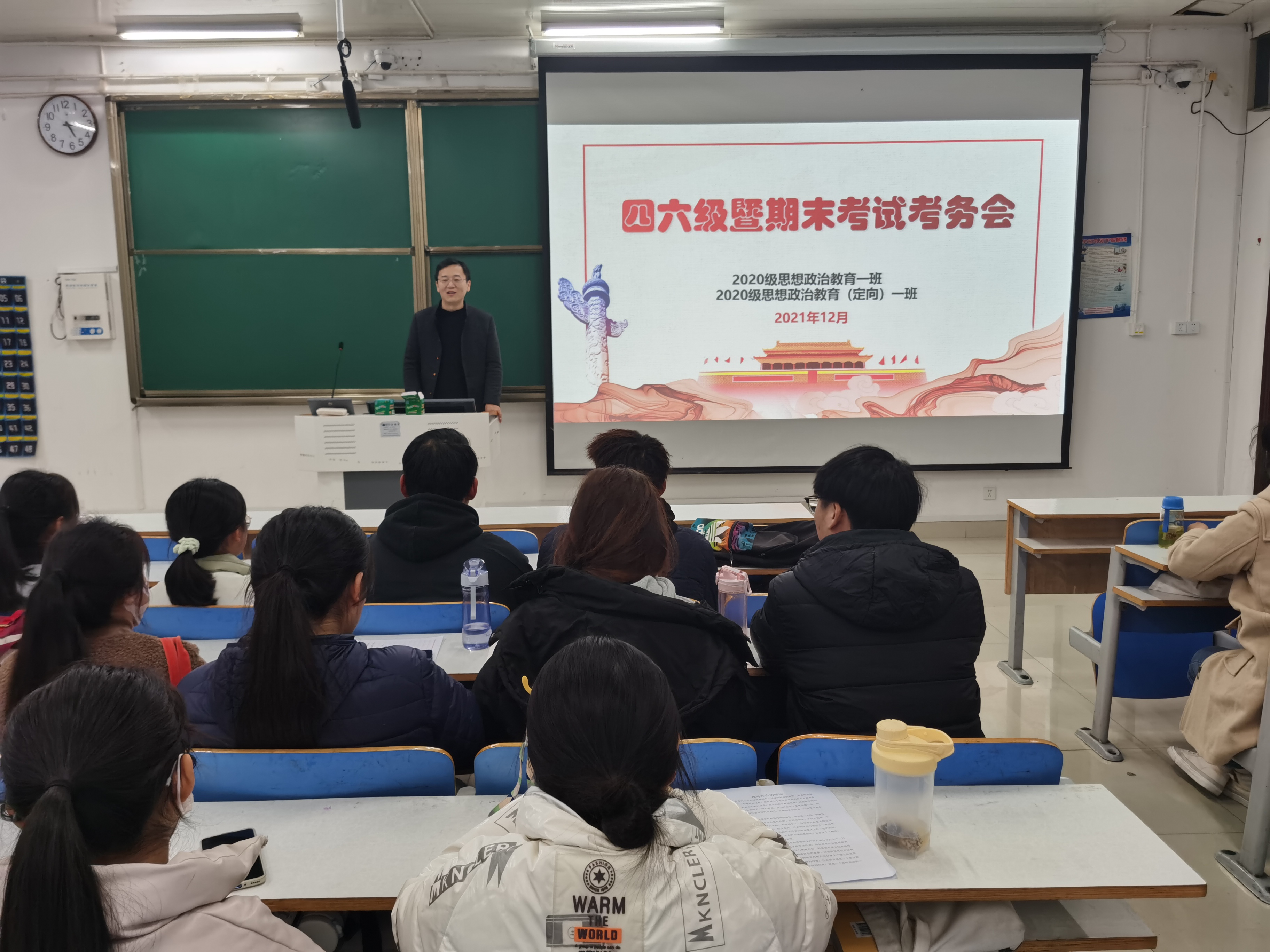 12月1日下午,pp电子官方网站2020级思想政治教育一班、定向一班在社科楼514教室召开四六级暨期末考试考务会。辅导员曹栋及2020级思想政治教育一班、定向一班全体同学参加了本次考务会,考务会由曹栋主持。