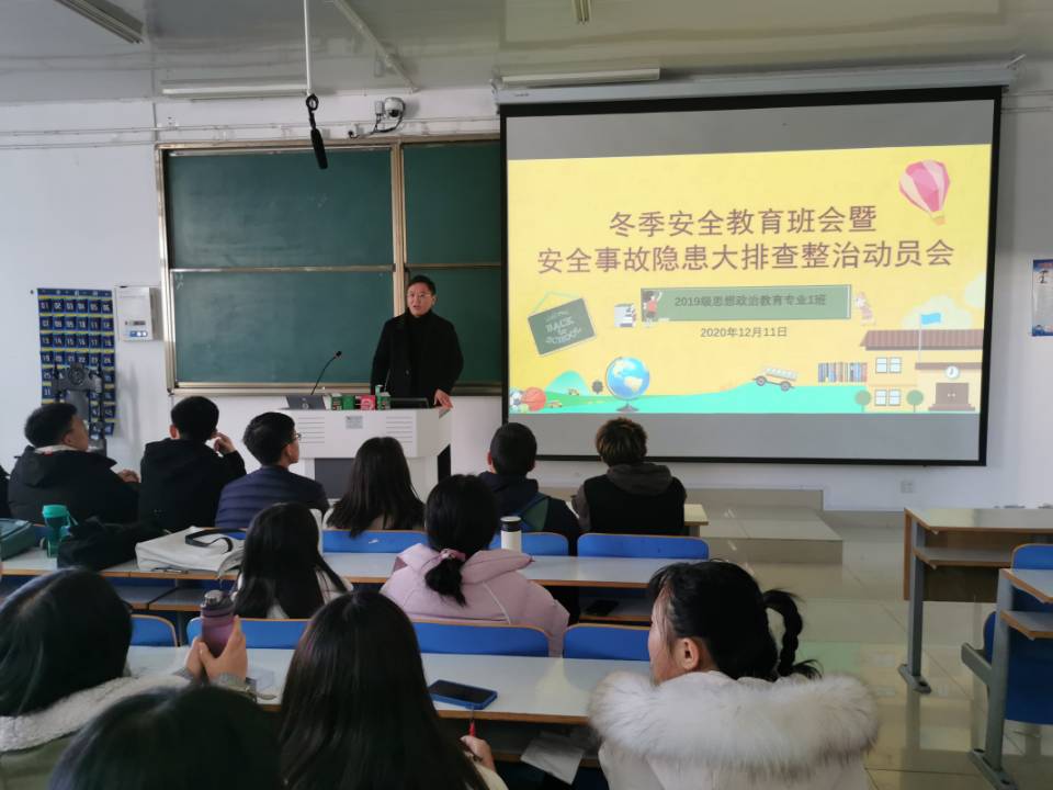 12月13日上午,pp电子官方网站2019级思想政治教育一班在社科楼516教室召开英语四六级暨期末考试考务会。2019级思想政治教育一班全体成员参加本次考务会,考务会由辅导员曹栋主持。