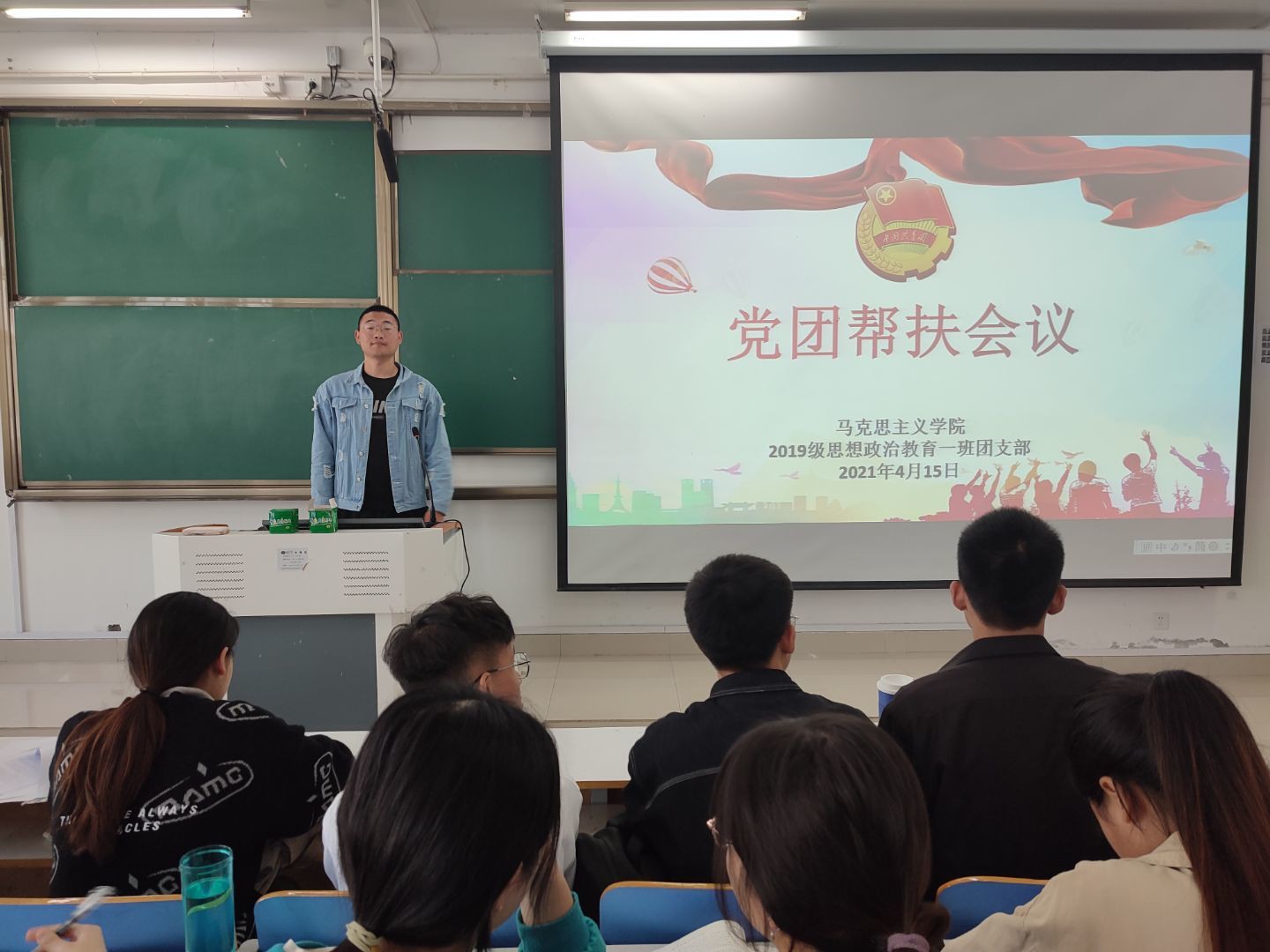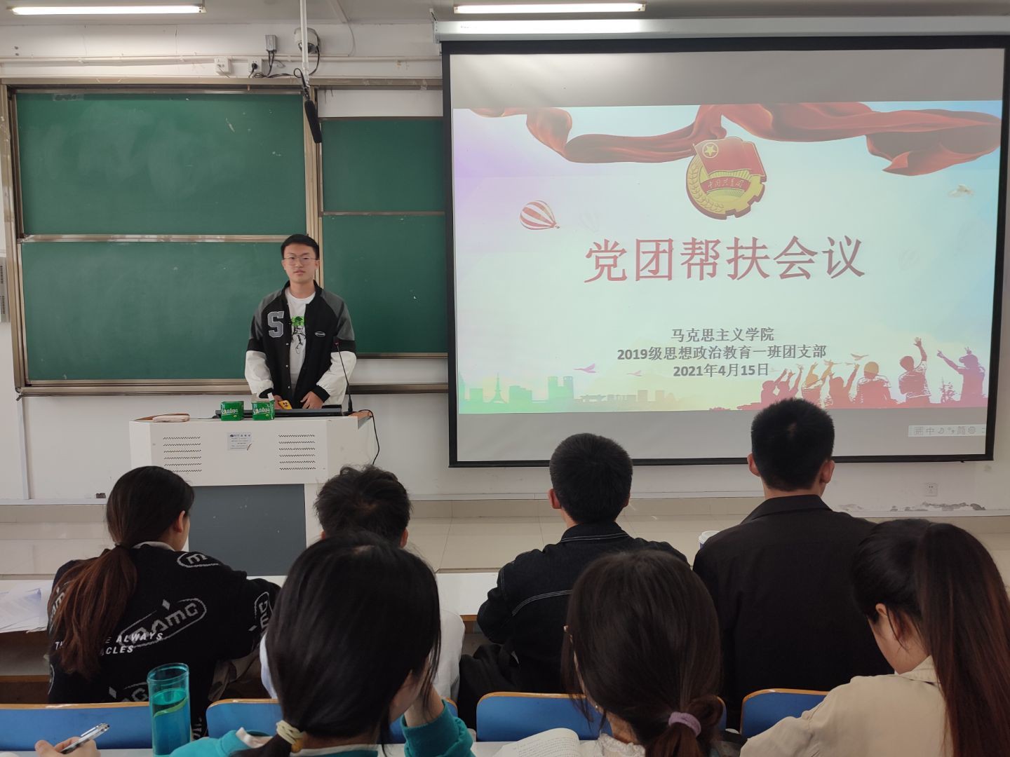 4月15日上午,pp电子官方网站2019级思想政治教育一班在社科楼514教室召开党团帮扶会。2019级思想政治教育一班全体成员参加本次会议,会议由团支书贾子漪主持。