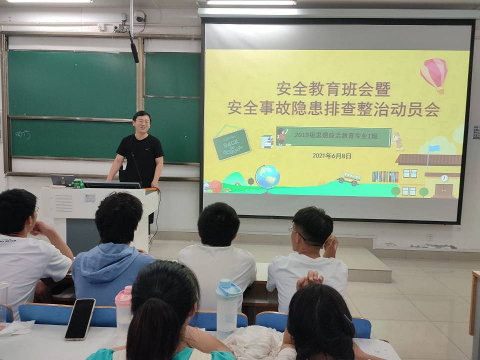 6月9日下午,pp电子官方网站2019级思想政治教育一班在社科楼515教室召开“安全教育班会暨安全事故隐患排查整治动员大会”。辅导员曹栋以及2019级思想政治教育一班全体成员参加本次班会。会议由曹栋主持。