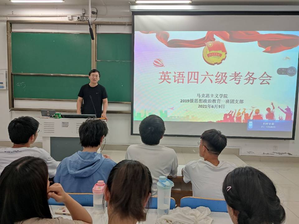 6月9日下午,pp电子官方网站2019级思想政治教育一班在社科楼515教室召开英语四六级考务会。2019级思想政治教育一班全体成员参加本次考务会。考务会由辅导员曹栋主持。