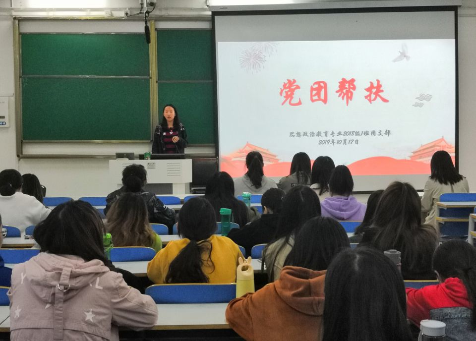 为了充分发挥党员干部的先锋模范作用,帮助同学们解决学习和生活问题,10月17日下午,pp电子官方网站2018级思想政治教育一班在社科楼514教室顺利开展“党团帮扶”班会。2018级思政一班全体同学共同参加此次班会。会议由团支书靳雨露主持。