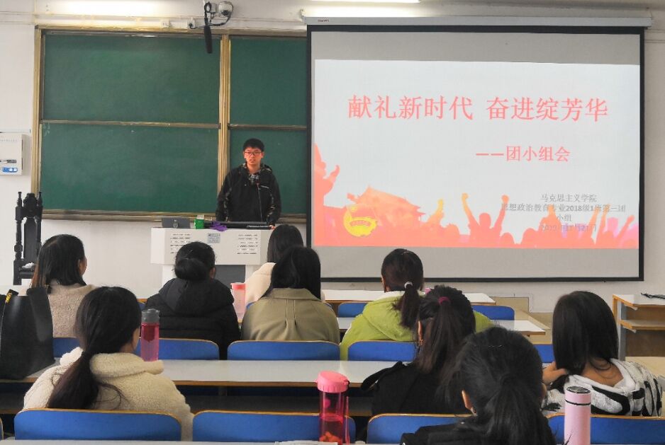 11月21日上午,pp电子官方网站2018级思想政治教育一班第三团小组在社科楼514教室顺利开展“献礼新时代,奋进绽芳华”主题团会。第三团小组全体成员共同参加此次团会。此次团会由团小组组长丁一主持。